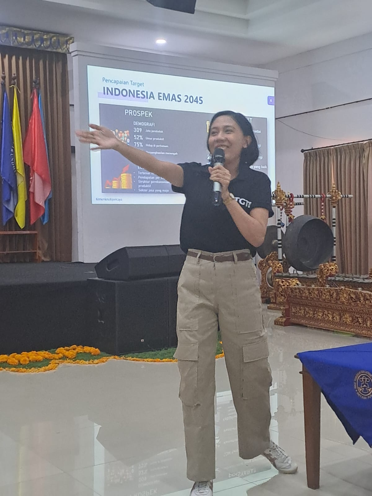 Mewakili Kepala KPP Badung Utara, Kepala Seksi Pelayanan Ludi Fitrian membuka acara dengan sambutan dan menyampaikan harapan kepada generasi muda untuk mewujudkan Indonesia Emas 2045, salah satunya melalui peningkatan pemahaman pentingnya peran pajak dalam kehidupan berbangsa dan bernegara.