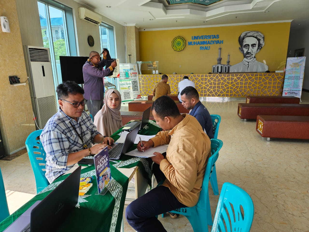 KPP Pratama Pekanbaru Tampan membuka Layanan di Luar Kantor (LDK) di Kampus Utama Universitas Muhammadiyah Riau (UMRI), Jl. Tuanku Tambusai, Pekanbaru, Riau (Rabu, 27/3). Pojok Pajak Layanan dilaksanakan di Lobby Kampus sehingga lokasinya sangat strategis, yang merupakan jalur utama para pegawai, mahasiswa dan pengunjung UMRI.