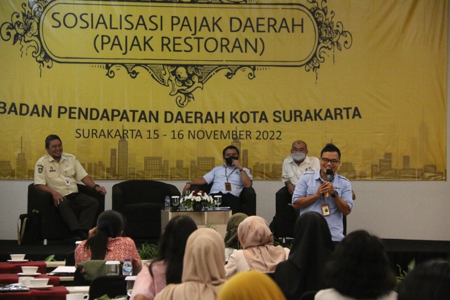 Kantor Wilayah Direktorat Jenderal Pajak (Kanwil DJP) Jawa Tengah II memenuhi undangan Badan Pendapatan Daerah Kota Surakarta untuk menjadi narasumber pada kegiatan sosialisasi pajak bagi restoran di Paragon Solo Hotel & Recidences (Selasa, 15/11). Dihadapan 130 peserta pelaku usaha restoran, Timon Pieter selaku Fungsional Penyuluh Ahli Madya Kanwil DJP Jawa Tengah II membawakan materi terkait Peraturan Menteri Keuangan (PMK) Nomor PMK-70/PMK.03/2022 tentang Kriteria dan/atau Rincian Makanan dan Minuman Jasa Kesenian dan Hiburan, Jasa Perhotelan, Jasa Penyediaan Tempat Parkir, serta Jasa Boga atau Katering yang Tidak Dikenai Pajak Pertambahan Nilai.