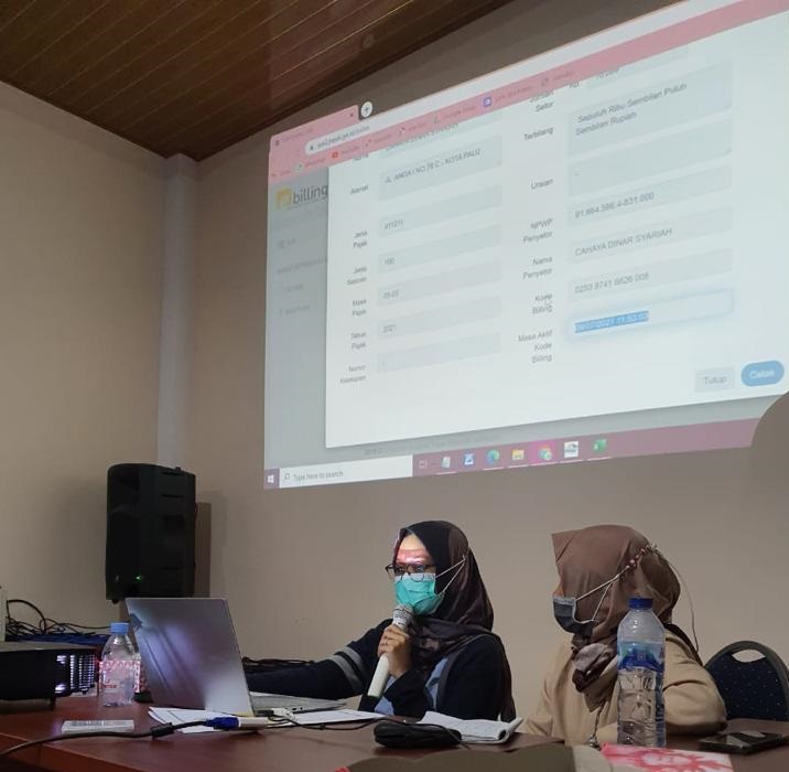 Pemateri dalam kegiatan ini yaitu Fungsional Penyuluh Pajak KPP Pratama Palu Suherman dan Asria Ningsih dengan dibantu oleh asisten penyuluh Noor Fitria Kartika Sari.
