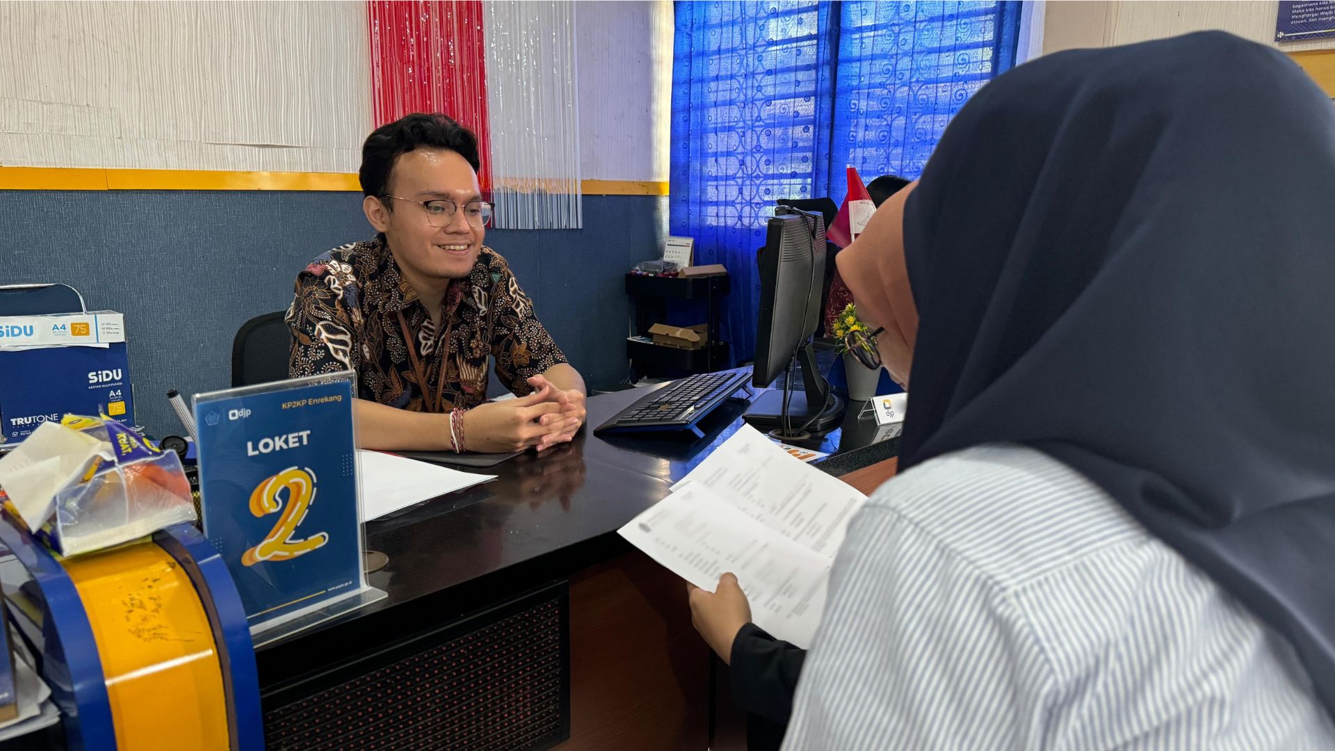 Kantor Pelayanan, Penyuluhan, dan Konsultasi Perpajakan (KP2KP) Enrekang memberikan edukasi aspek perpajakan pengalihan tanah kepada wajib pajak di Tempat Pelayanan Terpadu (TPT) KP2KP Enrekang, Jalan Buttu Juppandang, Kelurahan Juppandang, Kecamatan Enrekang (Jumat, 30/8).