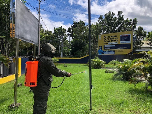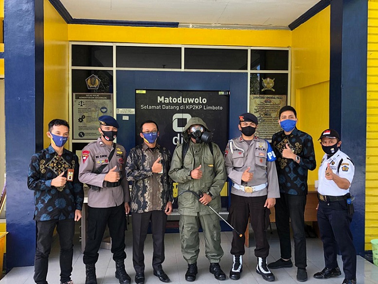 KP2KP Limboto berterima kasih kepada Brimob Gorontalo atas aksinya dalam melakukan penyemprotan disinfektan di seluruh kantor pelayanan se-Kabupaten Gorontalo, termasuk KP2KP Limboto. (FW)