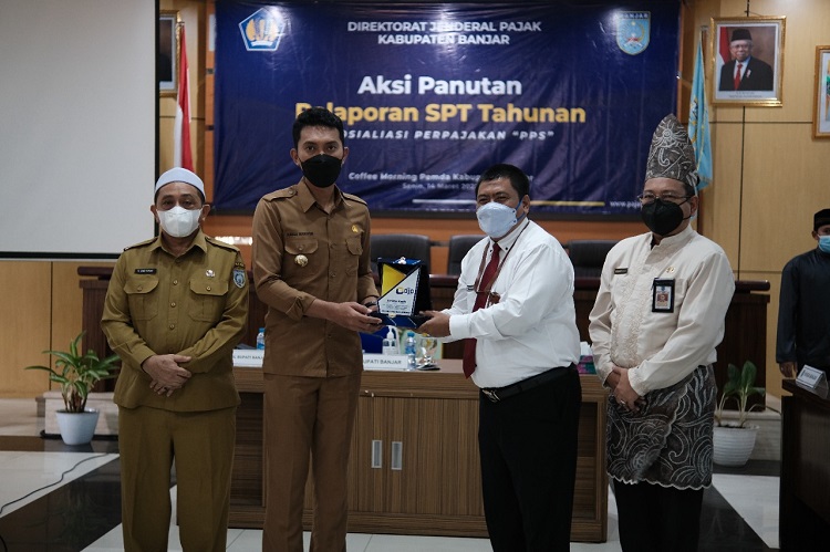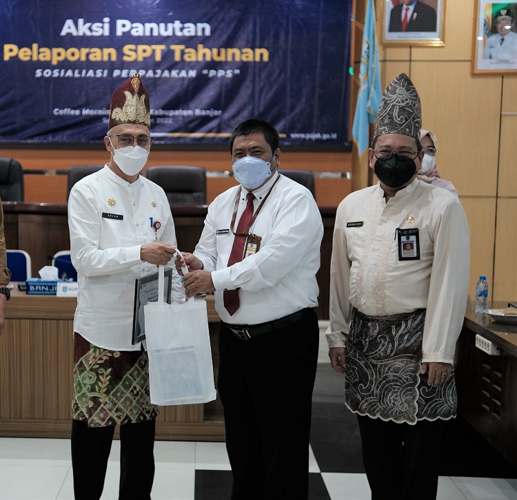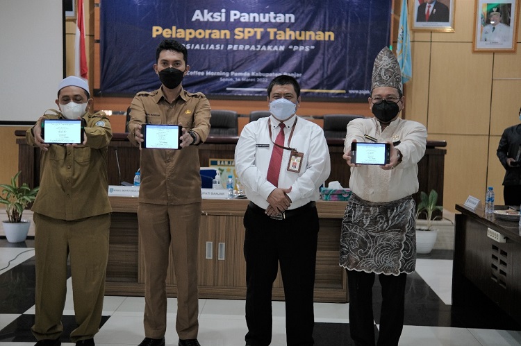 KP2KP Martapura dan KPP Pratama Banjarbaru melaksanakan kegiatan Aksi Panutan Pelaporan SPT Tahunan bersama Bupati Kabupaten Banjar Bp. H. Saidi Mansyur, S.I.Kom., Wakil Bupati Bp. H. Said Idrus, Sekretaris Daerah Kabupaten Banjar Bp. Dr. Ir. H. Mokhamad Hilman, S.T., M.T., beserta jajaran pejabat Pemerintah Daerah Kabupaten Banjar (Senin, 16/3).