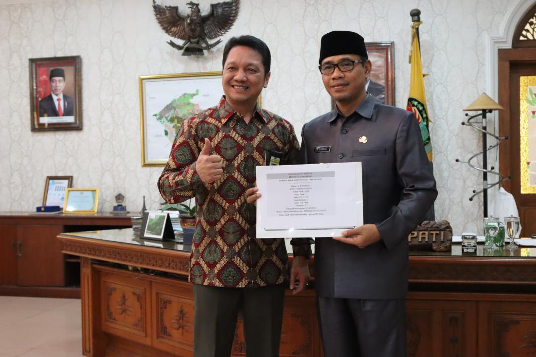 Bupati Temanggung H. Muhammad Al Khadziq menyampaikan Surat Pemberitahuan Tahunan (SPT) Pajak Penghasilan (PPh) Orang Pribadi Tahun 2019 secara daring melalui e-Filing di Ruang Kerja Bupati Temanggung (Selasa, 25/2).