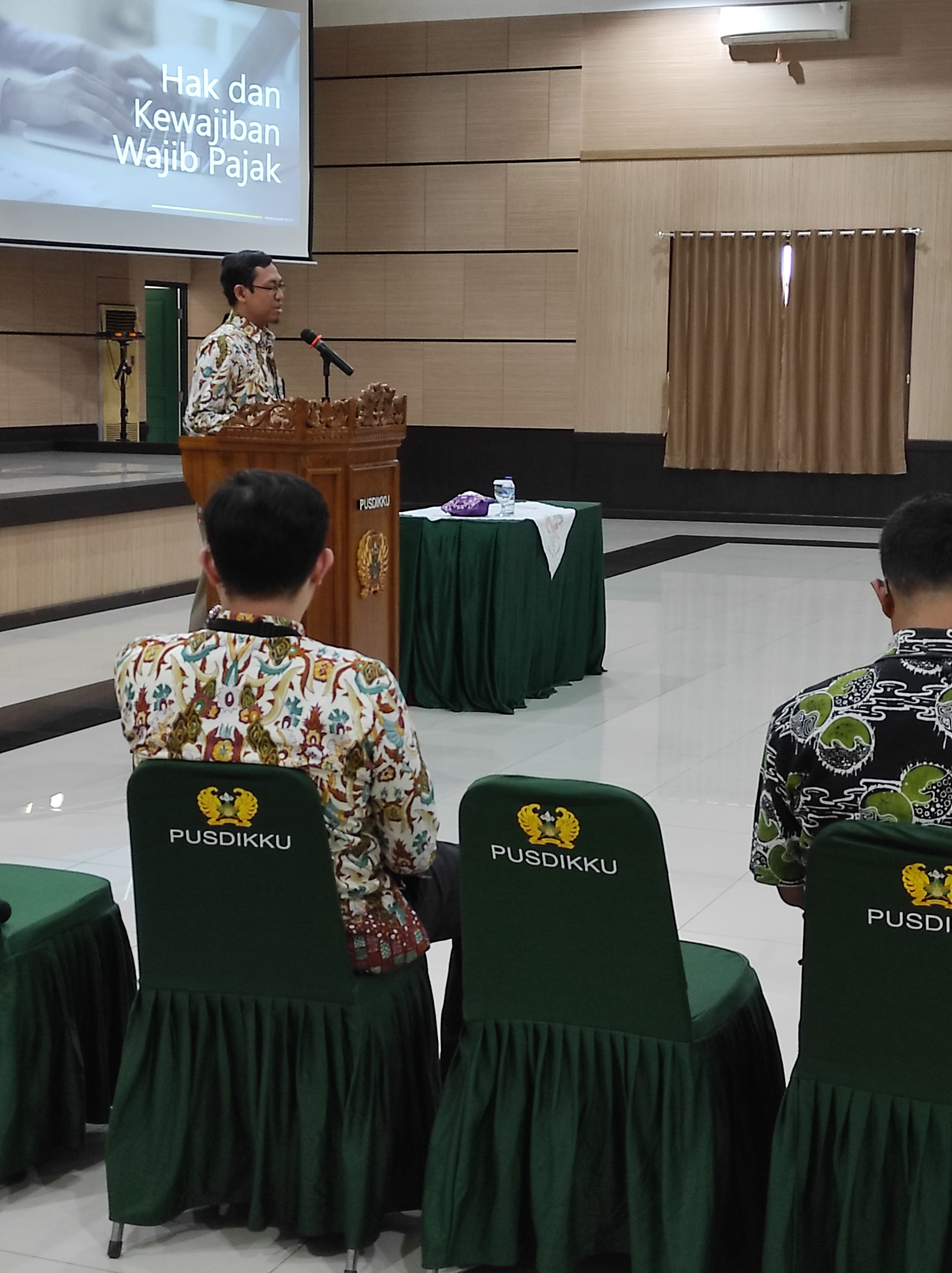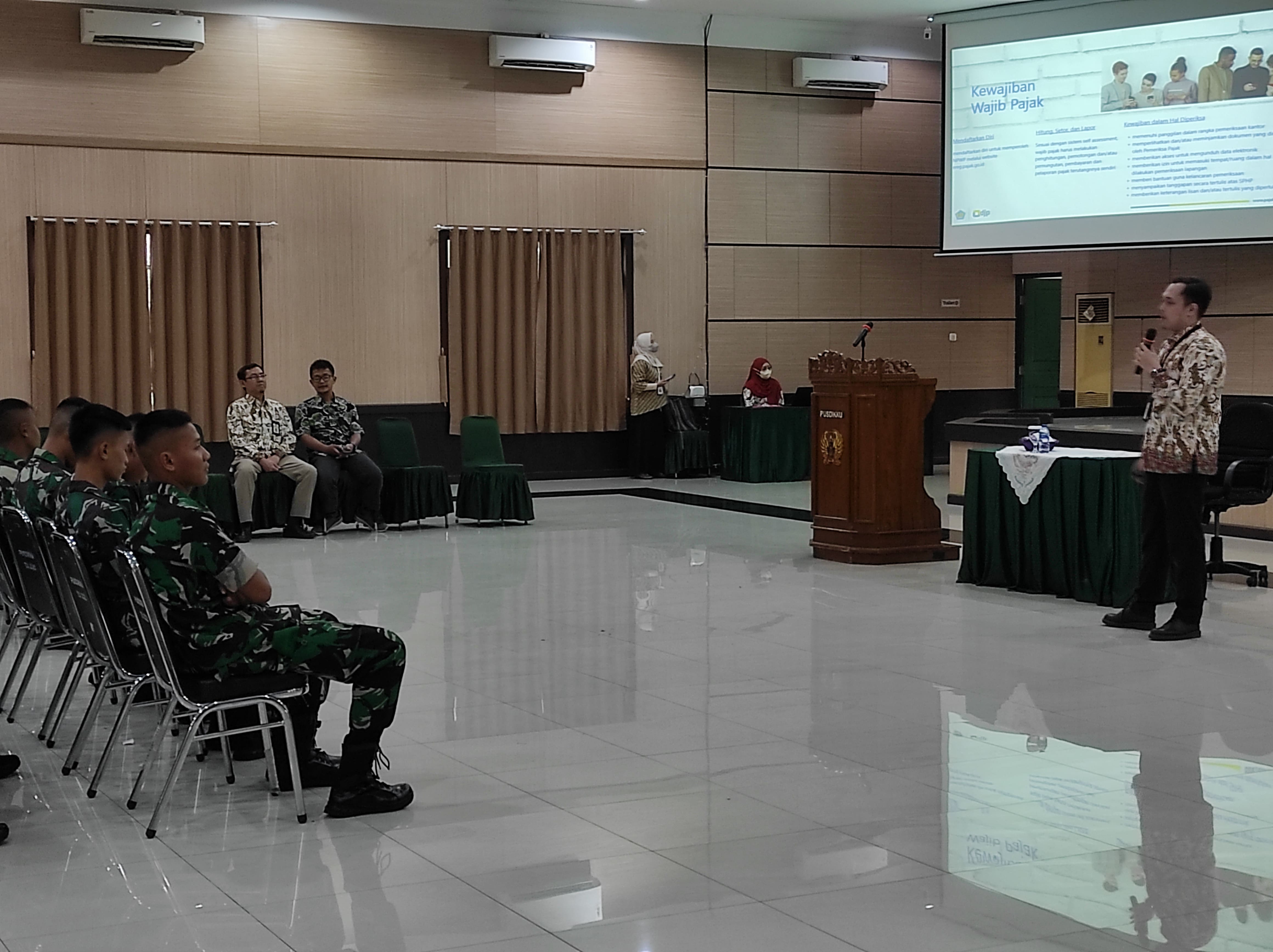 Penyuluh Pajak Fakhri Raihan membahas tentang kewajiban wajib pajak yang telah memiliki NPWP serta tata cara pengisian SPT melalui situs pajak.go.id. Danpusdikku Ditkuad Kolonel Cku Heri Hermawan, S.E., M.M., M.I.Pol. berpesan agar seluruh calon juru bayar lebih "melek pajak dengan adanya sosialisasi ini.