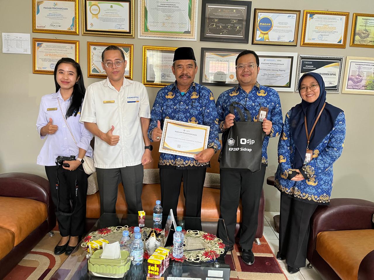 Kantor Pelayanan, Penyuluhan, dan Konsultasi Perpajakan (KP2KP) Sidrap melakukan kunjungan kerja ke Badan Pusat Statistik (BPS) Kabupaten Sidenreng Rappang dalam rangka memberikan apresiasi atas tercapainya pelaporan SPT Tahunan Orang Pribadi seratus persen (Senin, 24/02).