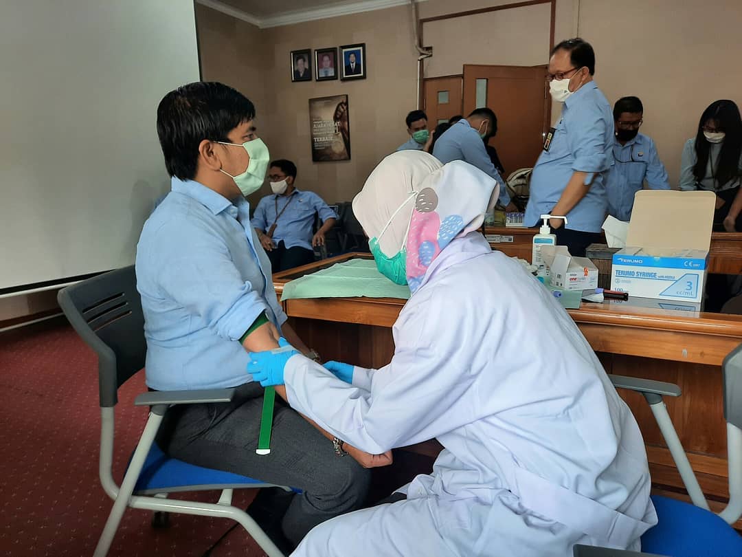 Dalam rangka pencegahan penularan Covid-19 ini, KPP Pratama Soreang menggandeng Laboratorium Diagnostik Klinik dan Vaksinasi PT Bio Farma (Persero) untuk menyelenggarakan rapid test kepada seluruh pegawai.