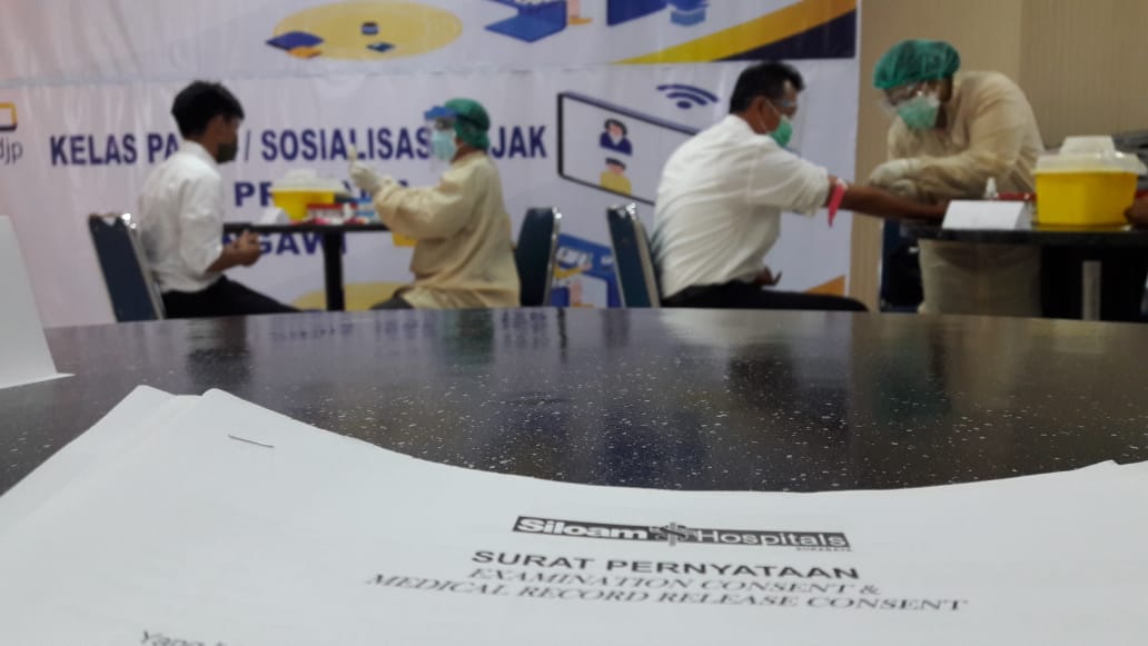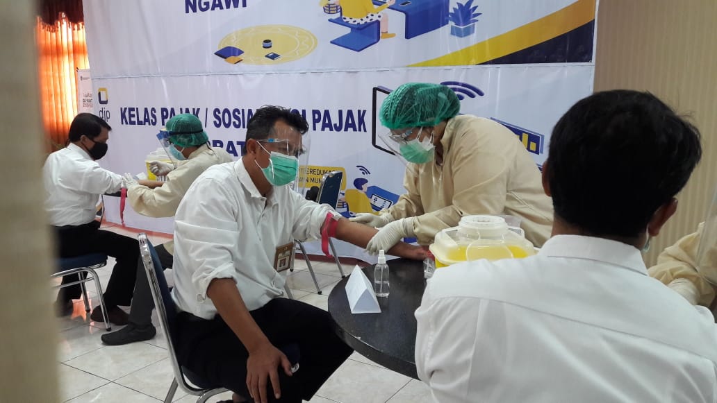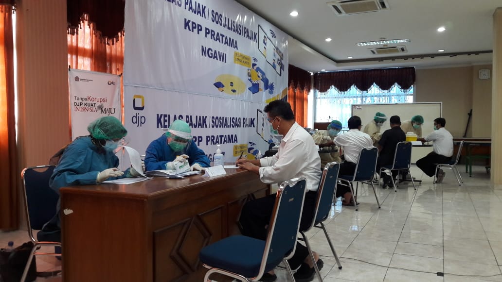 Bekerja sama dengan RS Siloam Surabaya, Kantor Pelayanan Pajak (KPP) Pratama Ngawi dan Kantor Pelayanan, Penyuluhan, dan Konsultasi Perpajakan (KP2KP) Magetan melakukan tes cepat Covid-19 dengan metode serologi di Aula KPP Pratama Ngawi (Senin, 28/9).