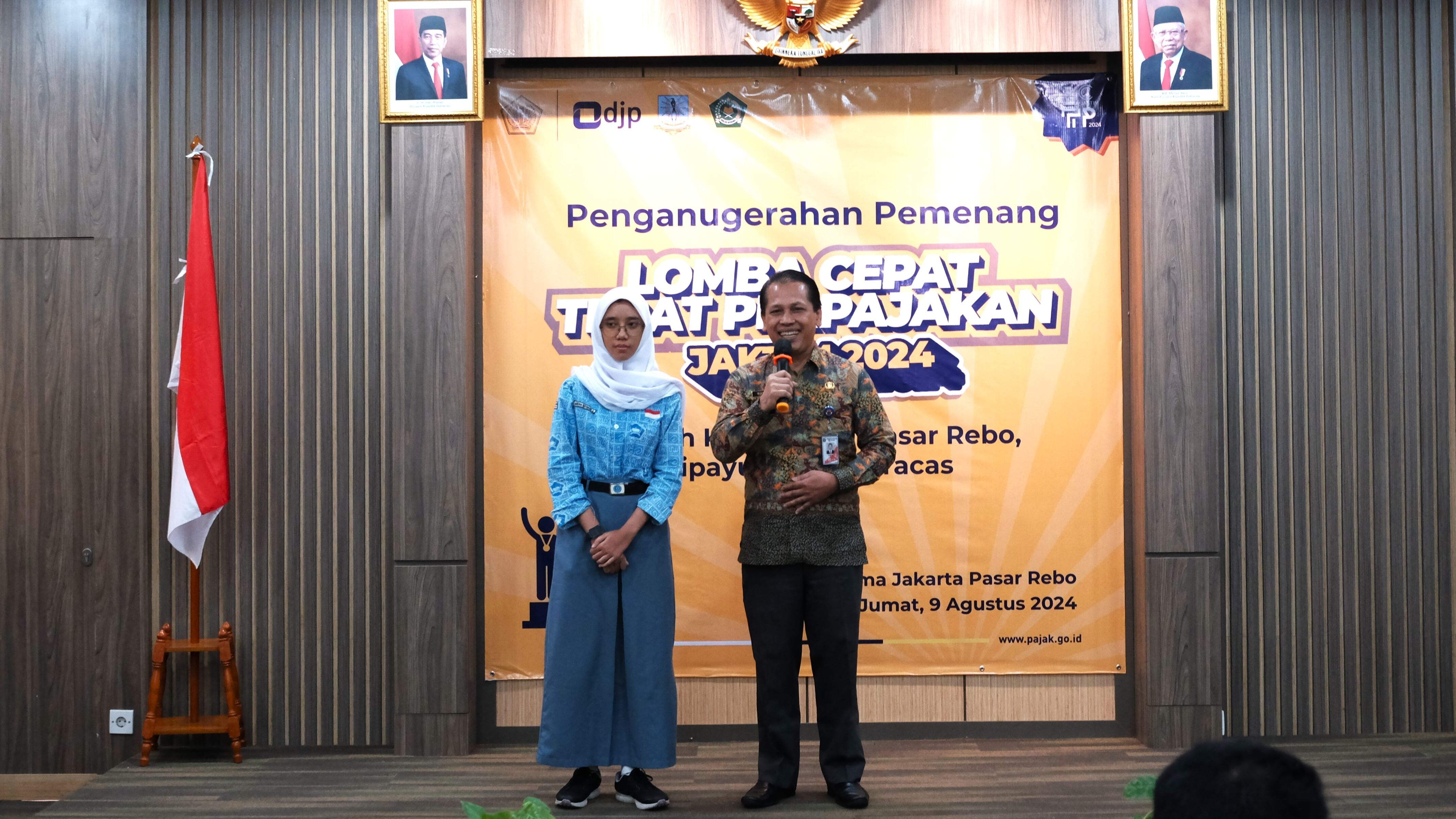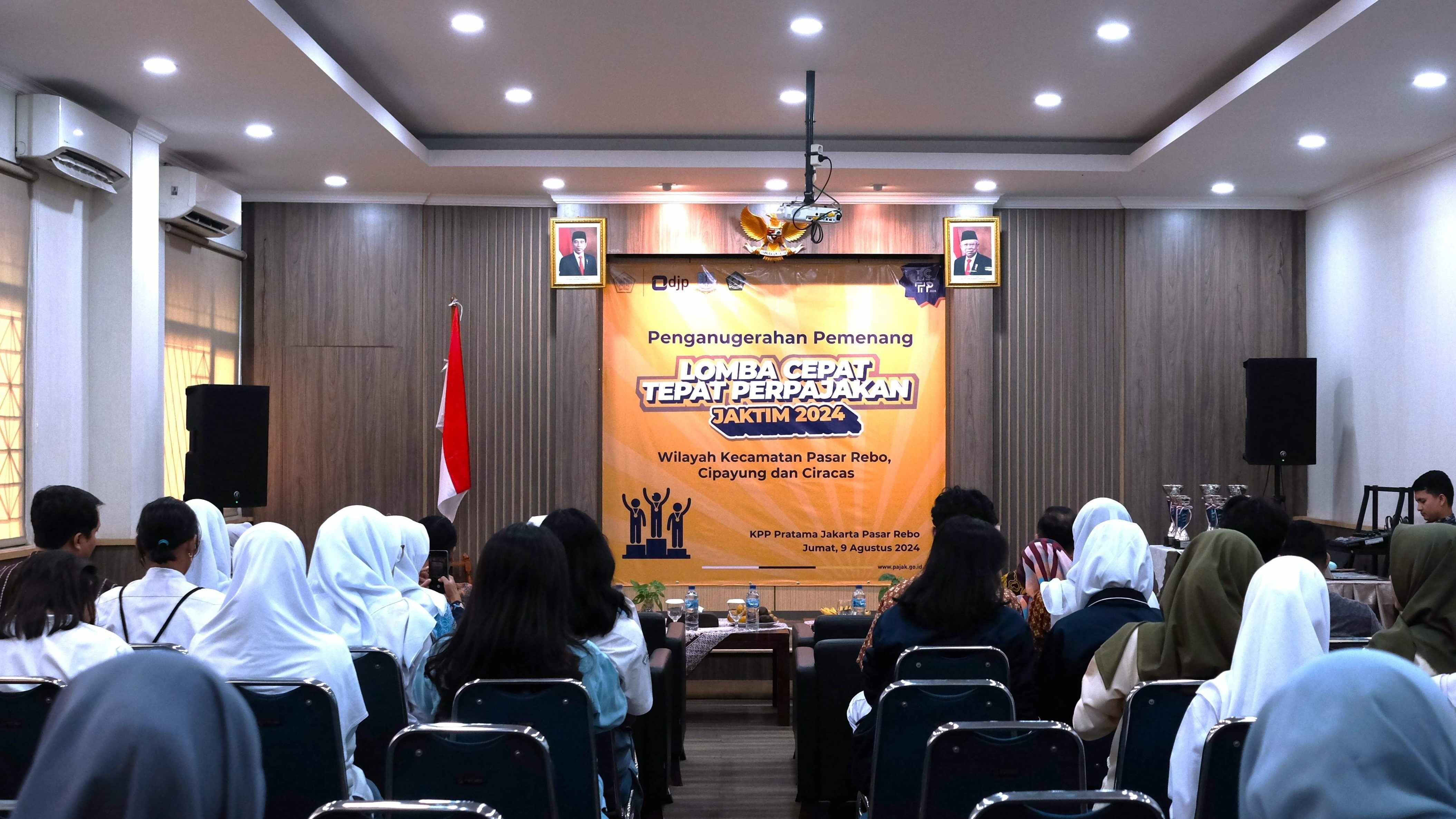 Kantor Pelayanan Pajak (KPP) Pratama Jakarta Pasar Rebo bersama dengan Kantor Wilayah Direktorat Jenderal Pajak (DJP) Jakarta Timur melangsungkan Penganugerahan Pemenang Lomba Cepat Tepat Perpajakan (LCTP) 2024 di Aula KPP Pratama Jakarta Pasar Rebo (Jumat, 9/8).