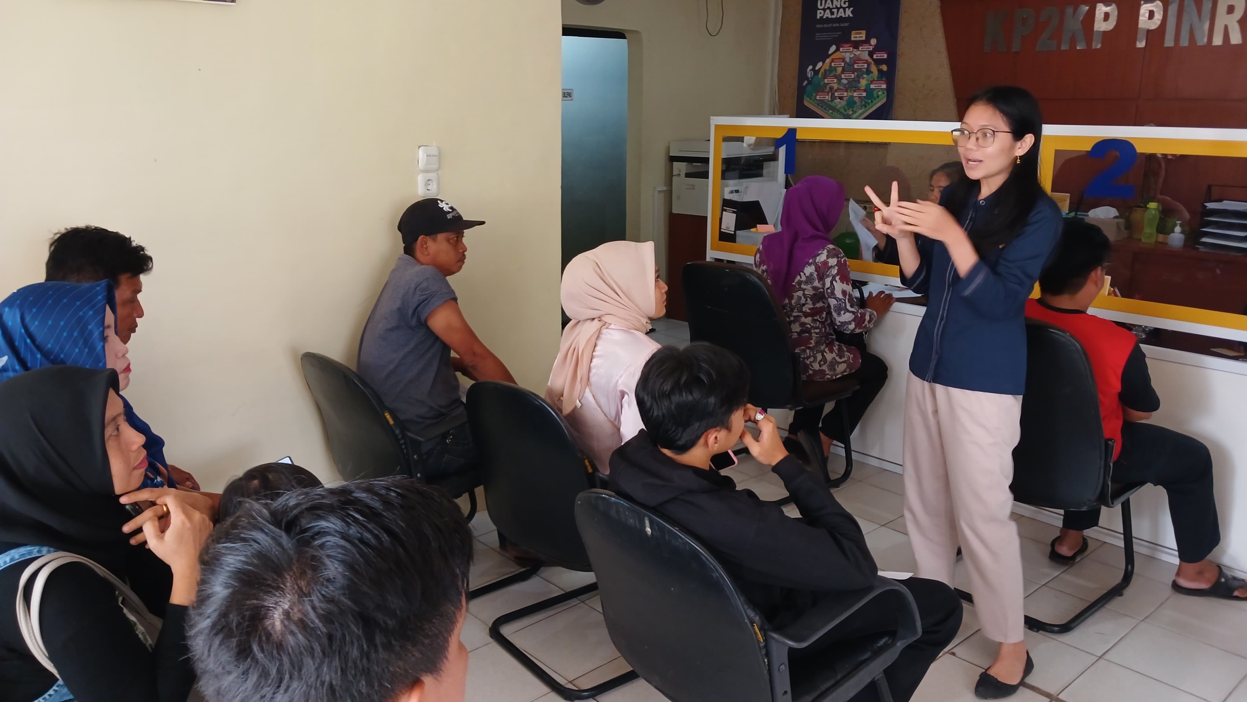 Rombongan Kelompok Tani mengunjungi Kantor Pelayanan, Penyuluhan, dan Konsultasi Perpajakan (KP2KP) Pinrang untuk membuat Nomor Pokok Wajib Pajak (NPWP) Kelompok Tani (Rabu, 7/2). Pembuatan NPWP tersebut sebagai salah satu persyaratan program bantuan Jaringan Irigasi Tingkat Usaha Tani (JITUT) di Kabupaten Pinrang.