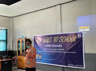Kantor Pelayanan, Penyuluhan, dan Konsultasi Perpajakan (KP2KP) Kaimana melanjutkan penyelenggaraan Tax Goes to School (TGTS) di SMAN 2 Kaimana yang berlokasi di Jalan Utarum Air Merah, Kaimana, Papua Barat (Selasa, 15/6). Kegiatan ini diadakan setelah penyelenggaraan di SMAN 1 Kaimana pada tanggal 8 Juni 2021,