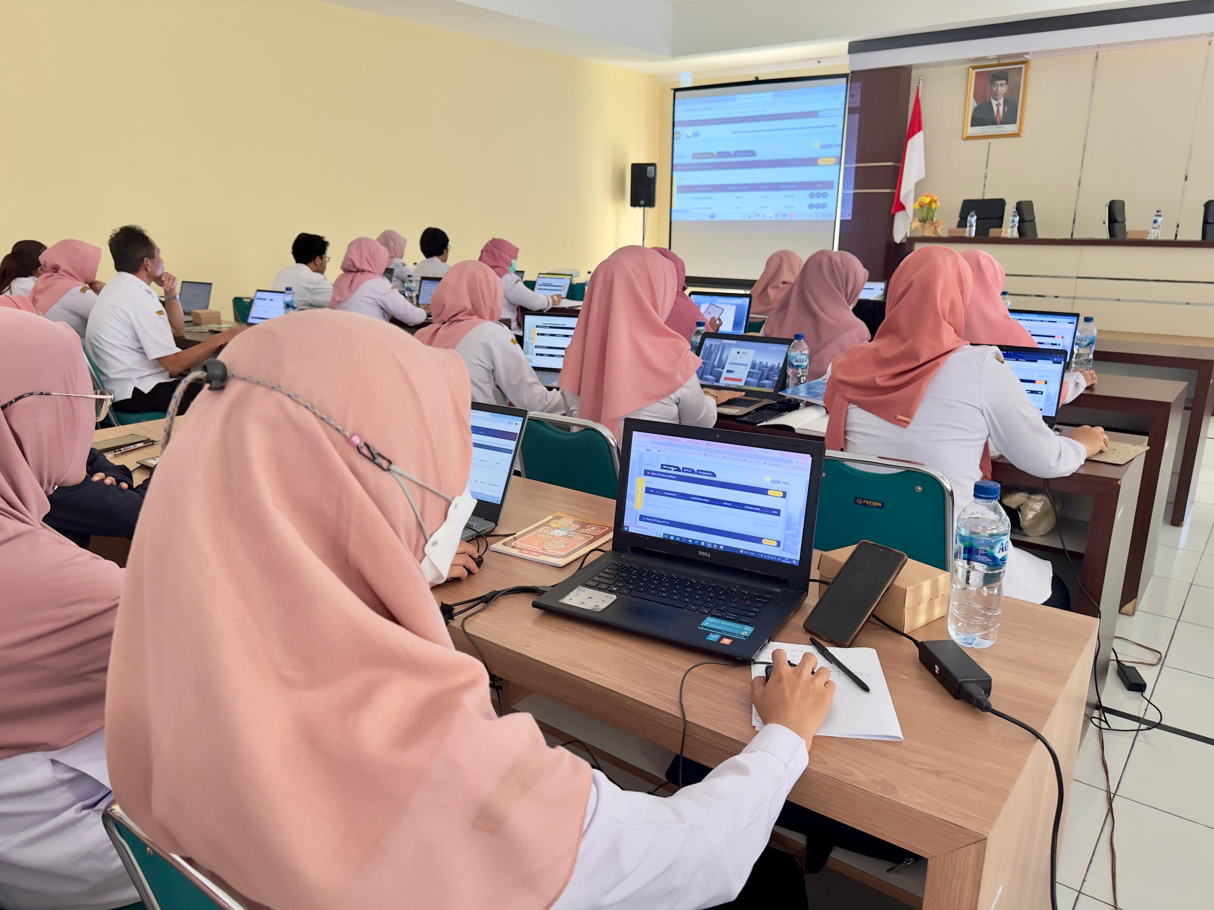 Adinda dalam sesi berikutnya memberikan arahan bagi peserta melakukan akses DJP Online untuk berlatih menerbitkan bukti pemotongan dan pemungutan.