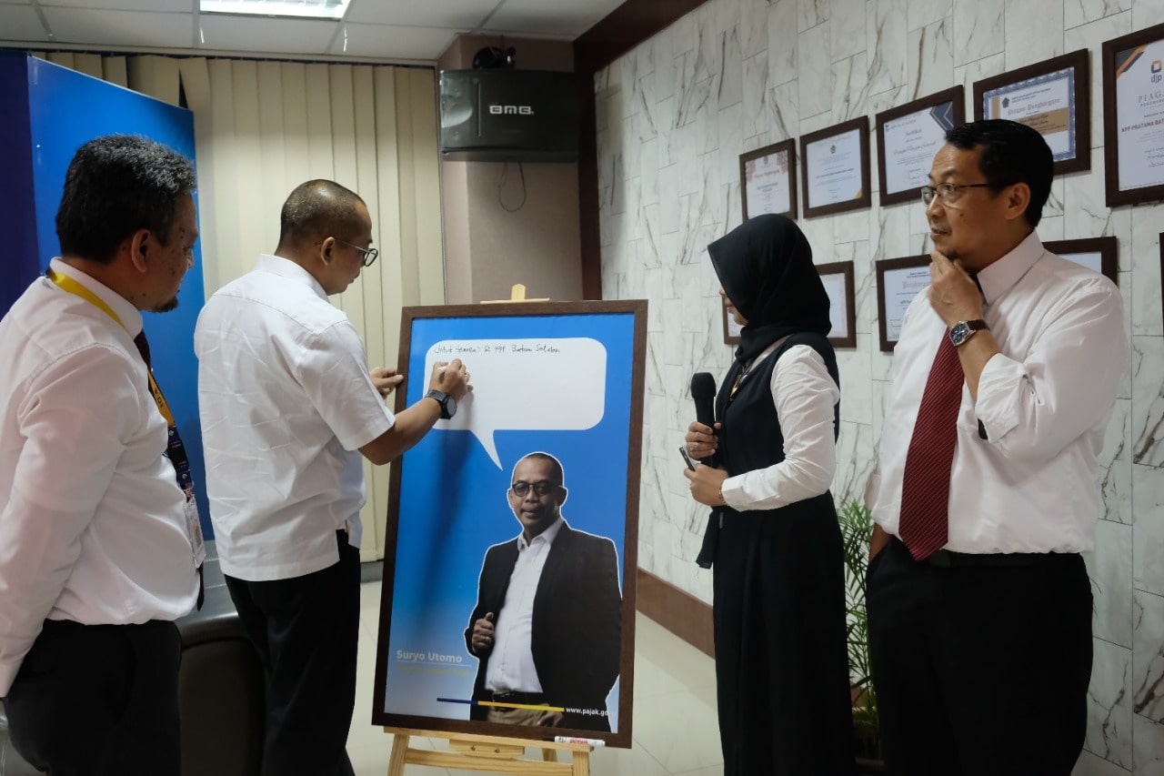 Kantor Pelayanan Pajak Pratama Batam Selatan mendapat kunjungan dari Direktur Jenderal (Dirjen) Pajak Kementerian Keuangan Suryo Utomo (Senin, 10/10). Kepala Kantor Wilayah DJP Kepulauan Riau Cucu Supriatna turut mendampingi kunjungan ini.