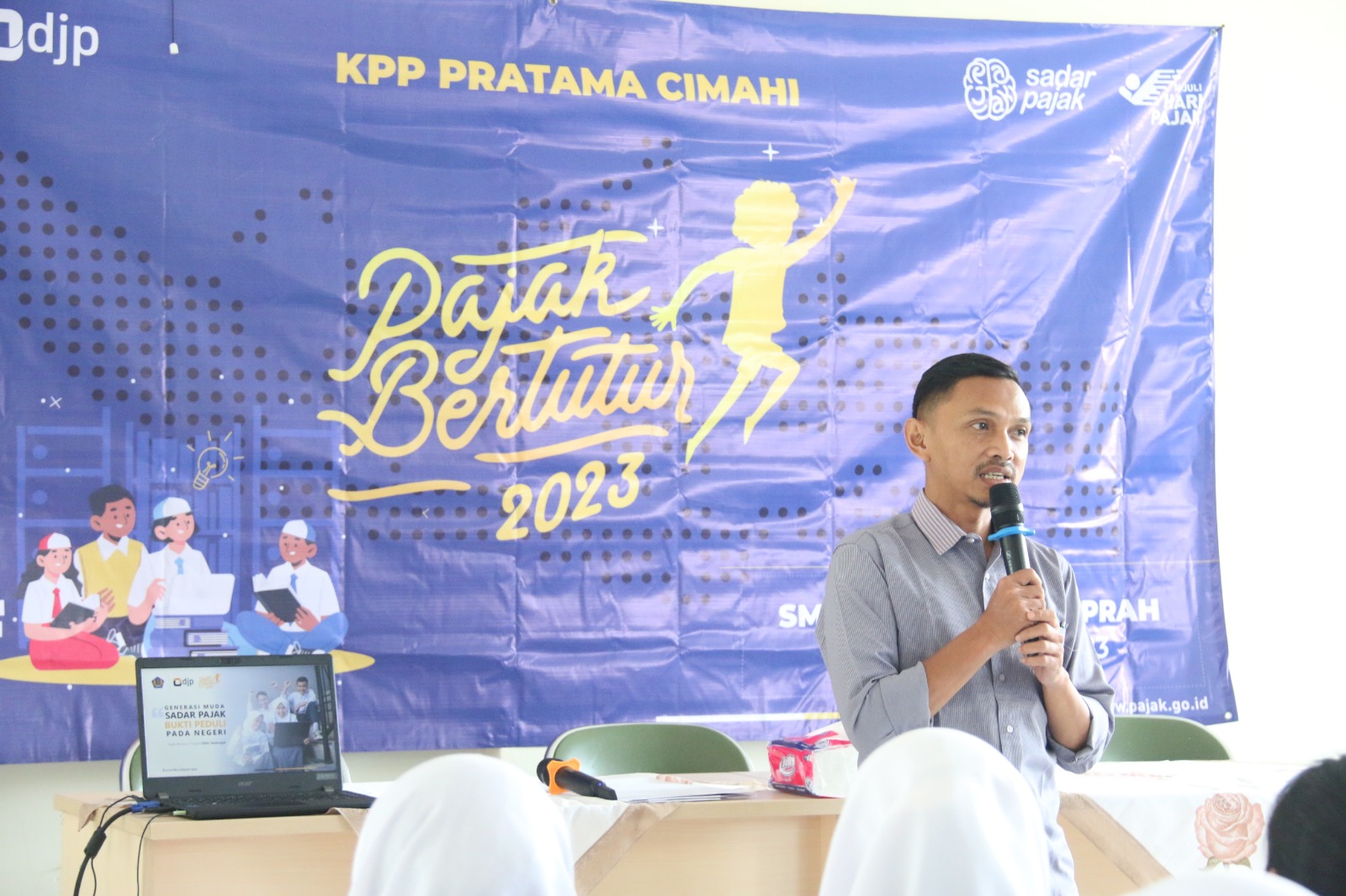 Kantor Pelayanan Pajak (KPP) Pratama Cimahi menyelenggarakan Pajak Bertutur 2023 di Sekolah Menengah Atas Negeri (SMAN) 1 Ngamprah, Jalan Kenanga Raya PCI 2, Desa Tani Mulya, Kabupaten Bandung Barat. Kegiatan diikuti oleh perwakilan siswa dari kelas 10 hingga kelas 12 (Kamis, 27/7).