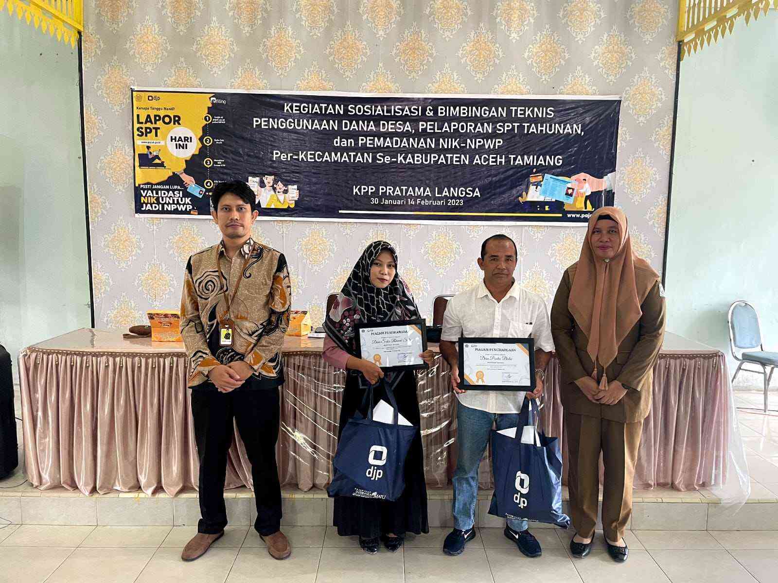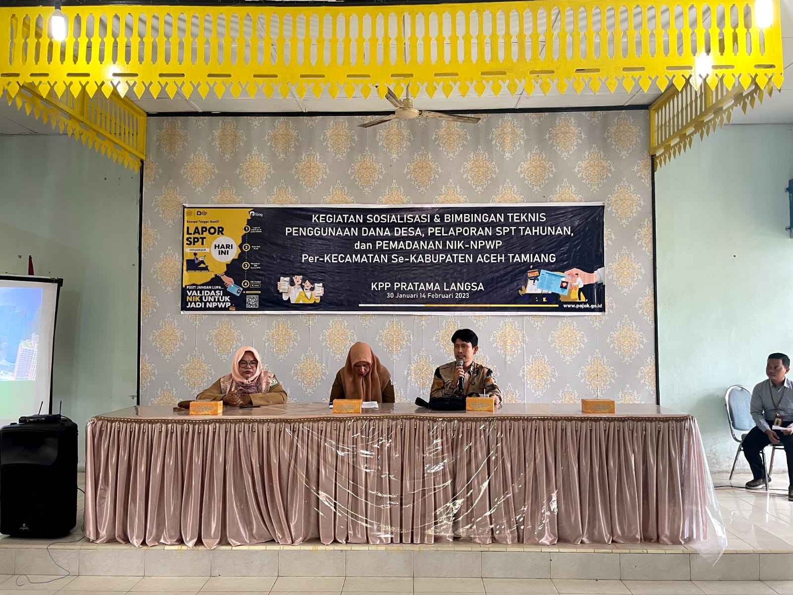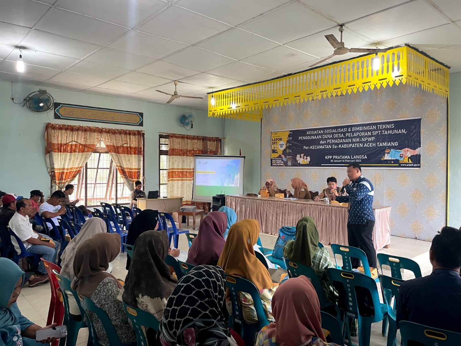 Kantor Pelayanan Pajak (KPP) Langsa dan Kantor Pelayanan, Penyuluhan, dan Konsultasi Perpajakan (KP2KP) Karang Baru memberikan sosialisasi perpajakan serta layanan di luar kantor/pojok pajak kepada para datok penghulu, para perangkat desa serta warga yang datang ke kantor Kecamatan Seruway (Selasa, 07/02).