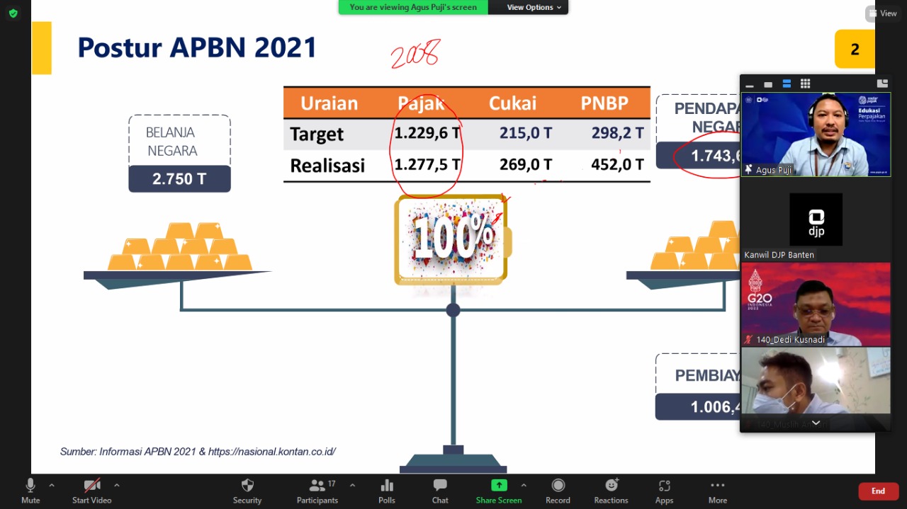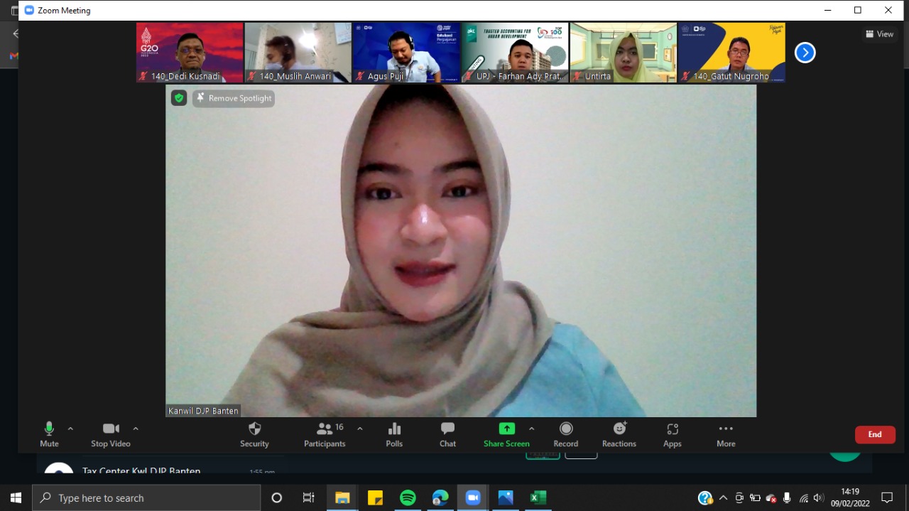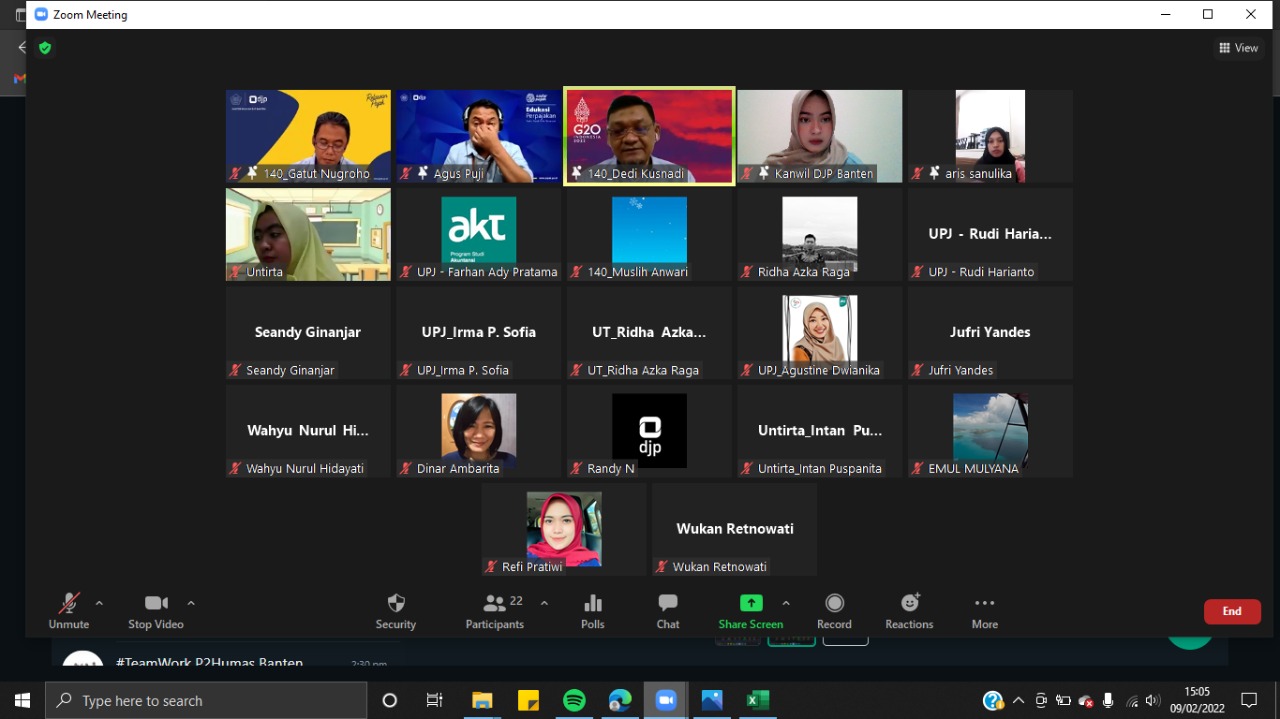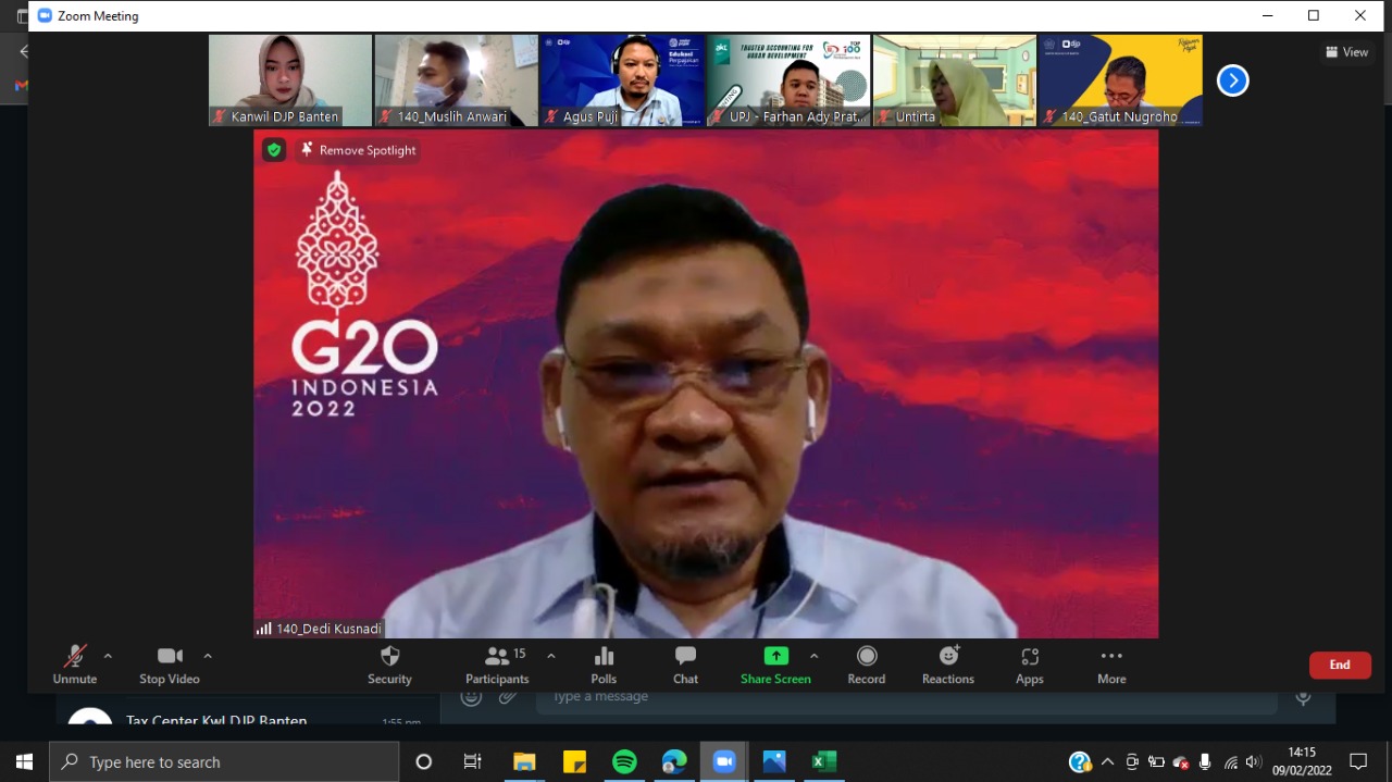 Kantor Wilayah DJP Banten bersama relawan pajak nonmahasiswa yang terdiri dari para dosen di lingkungan tax center Provinsi Banten dan Ikatan Akuntan Indonesia (IAI) Provinsi Banten melakukan kegiatan pembekalan kepada relawan pajak secara daring melalui aplikasi zoom cloud meeting di Kota Serang, Banten (Rabu, 9/2).