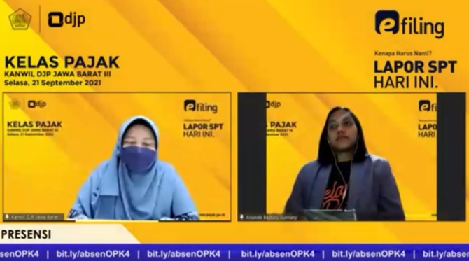 Dilakukan secara daring, kelas pajak ini diikuti oleh 26 Wajib Pajak Orang Pribadi di Wilayah Kota Bogor. Selain materi edukasi, peserta kelas pajak juga diisi dengan simulasi pengisian SPT Tahunan secara daring. Sebelum kegiatan diakhiri, peserta berkesempatan untuk berdiskusi dan mengajukan pertanyaan terkait materi yang telah disampaikan. Salah satu wajib pajak yang bergabung mengaku senang dan terbantu dengan adanya sosialisasi SPT Tahunan ini.