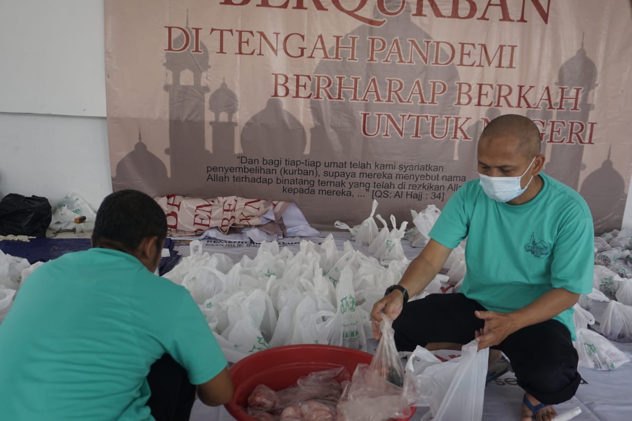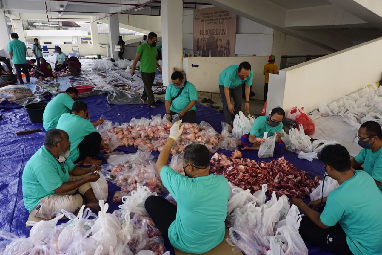 Proses pemotongan tujuh ekor sapi dari 40 pengurban tersebut terbilang cepat, dari pukul 08.00 WIB, penyembelihan hingga pencacahan potongan besar selesai pada pukul 10.00 WIB, dilanjutkan pemotongan menjadi bagian kecil dan proses pengemasan untuk kemudian didistribusikan. Proses pembagian selesai tepat pada pukul 16.00 WIB.