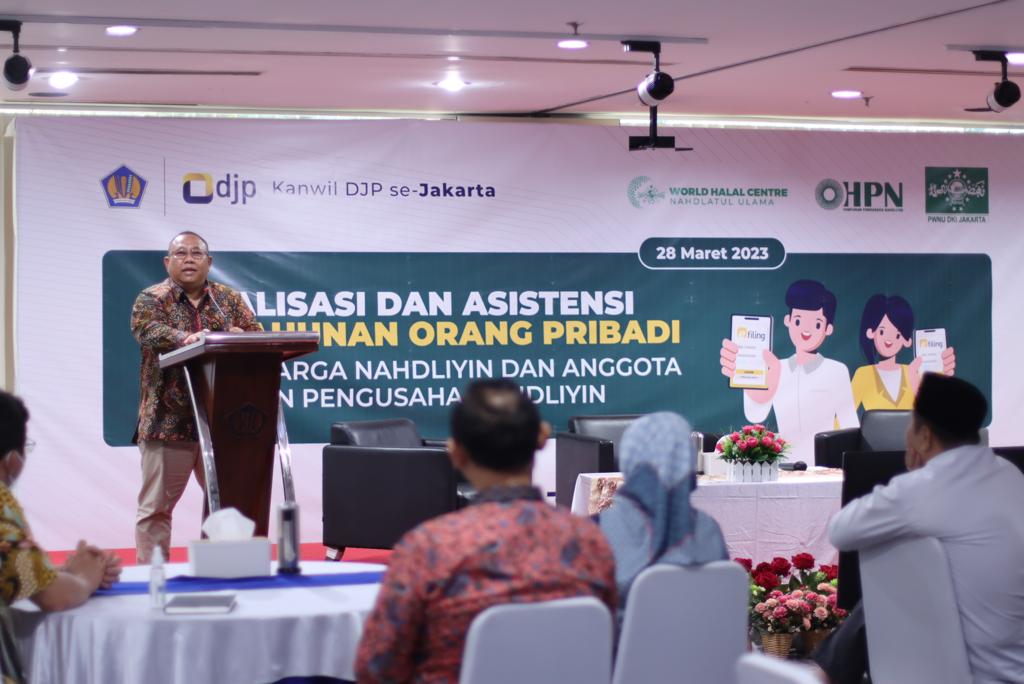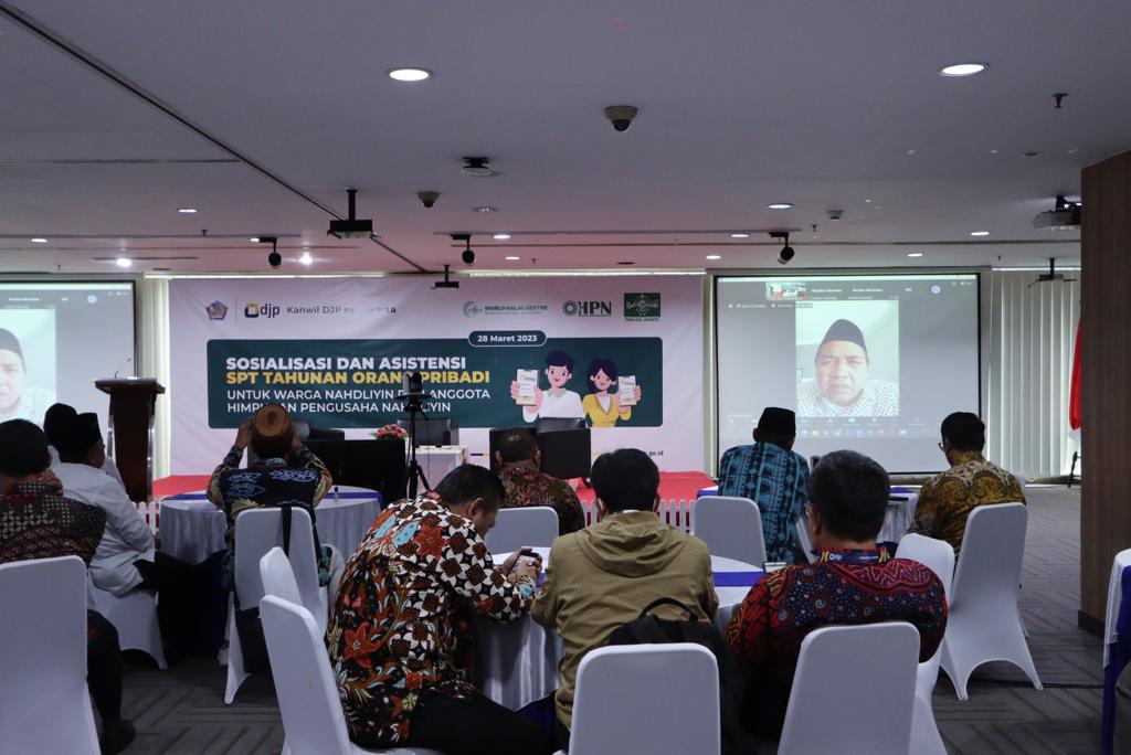 Kantor Wilayah Direktorat Jenderal Pajak (Kanwil DJP) se-Jakarta mengajak para pengusaha yang tergabung dalam Himpunan Pengusaha Nahdliyin (HPN) serta warga Nahdliyin untuk melaksanakan kewajiban perpajakan dengan memberikan sosialisasi dan asistensi pelaporan SPT Tahunan Orang Pribadi secara hybrid di Auditorium Harmoni Kantor Wilayah Direktorat Jenderal Pajak Jakarta Barat, Jalan Tomang Raya Nomor 16-18, Jakarta Barat (Selasa, 28/3).