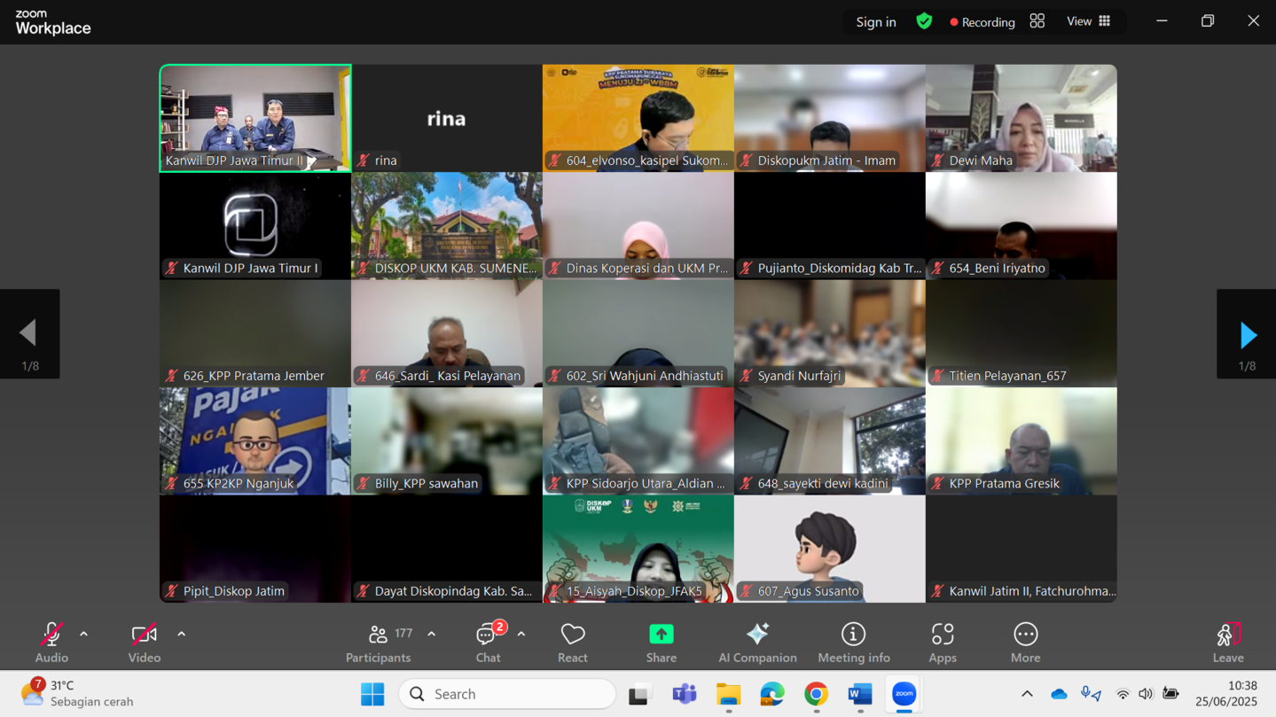 Kantor Wilayah Direktorat Jenderal Pajak Jawa Timur I (Kanwil DJP Jatim I) bersama Kanwil DJP Jatim II dan Kanwil DJP Jatim III mengikuti rapat koordinasi percepatan pembentukan Koperasi Desa/Kelurahan Merah Putih yang digelar secara daring (Rabu, 25/6). Kegiatan ini diselenggarakan oleh Dinas Koperasi, Usaha Kecil, dan Menengah Provinsi Jawa Timur serta diikuti oleh para pengurus Koperasi Desa/Kelurahan Merah Putih dari seluruh Jawa Timur.