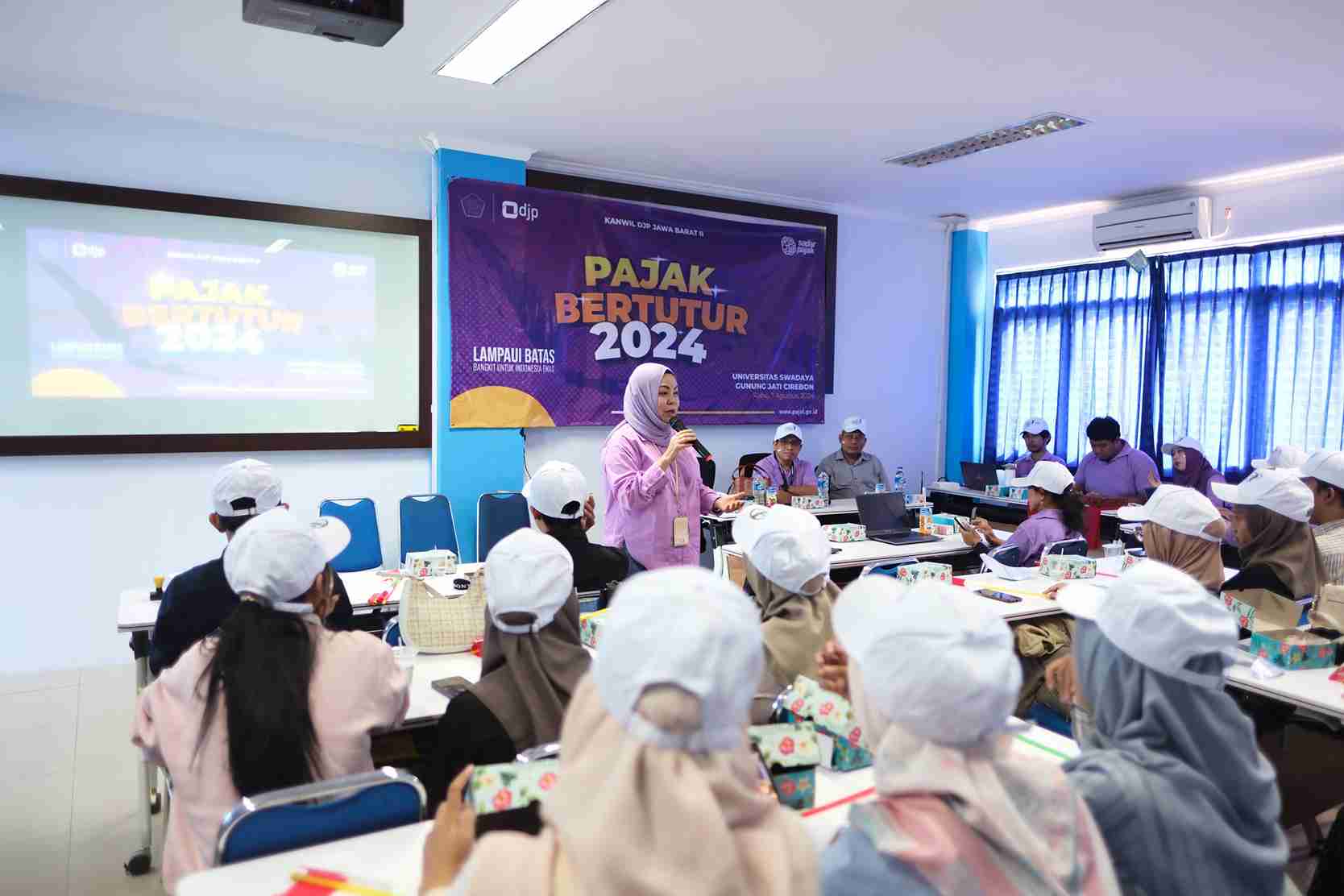 Dalam rangka menanamkan pengetahuan pajak sejak dini, Kantor Wilayah Direktorat Jenderal Pajak (Kanwil DJP) Jawa Barat II melaksanakan kegiatan Pajak Bertutur Tahun 2024 dengan tema Lampaui Batas, Bangkit Untuk Indonesia Emas yang diselenggarakan di Universitas Swadaya Gunung Jati Cirebon (UGJ) (Rabu, 7/8). Kegiatan ini diikuti oleh 40 mahasiswa dari Fakultas Ekonomi dan Bisnis UGJ.