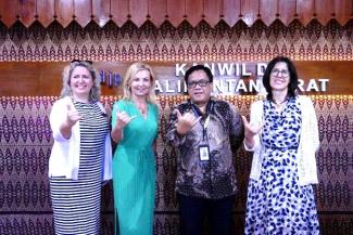 Kepala Kantor Wilayah DJP Kalimantan Barat menerima kunjungan tiga delegasi dari Nicolaus Copernicus University Polandia di ruang rapat Lt.II Kanwil DJP Kalimantan Barat (Selasa, 19/7).
