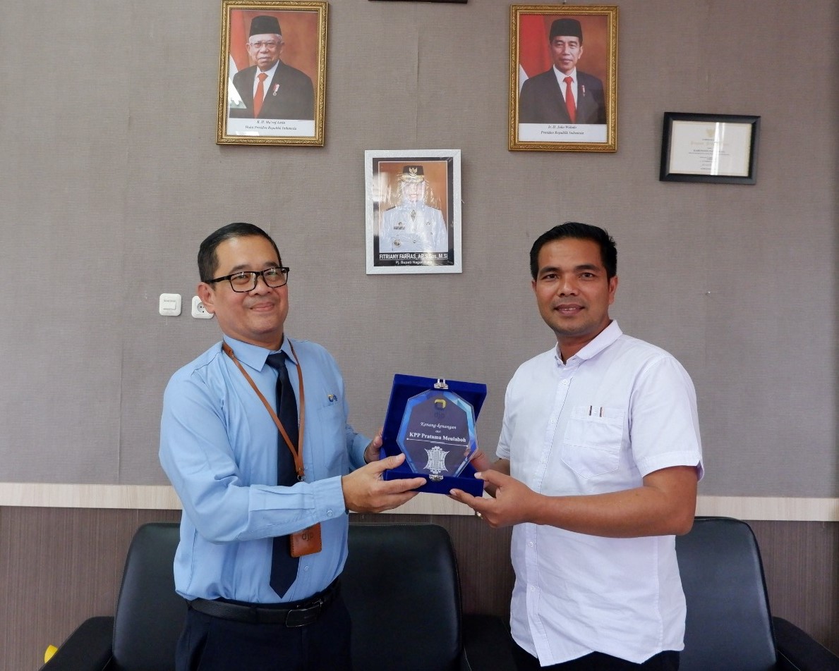Kepala Kantor Pelayanan Pajak (KPP) Pratama Meulaboh Wahyudi beserta rombongan melakukan kunjungan kerja ke Kepala Dinas Pemberdayaan Masyarakat Gampong Pengendalian Penduduk dan Pemberdayaan Perempuan (DPMGP4) Kabupaten Nagan Raya Provinsi Aceh, Damharius M.Si. Kunjungan ini merupakan upaya mempererat silaturahmi dan meningkatkan koordinasi serta sinergi antar Instansi Pemerintah (Rabu, 2/8).
