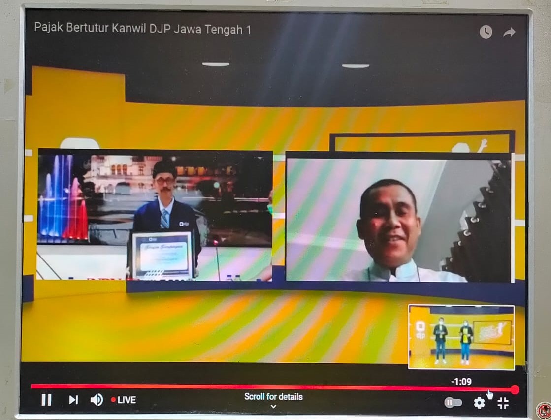 Kantor Wilayah (Kanwil) DJP Jawa Tengah I menyelenggarakan Pajak Bertutur (Patur) bertemakan “Generasi Muda Sadar Pajak Wujud Bela Negara” secara daring melalui Youtube Kantor Wilayah (Kanwil) DJP Jawa Tengah I dan Aplikasi Zoom Meeting bertempat di ruang Aula Lantai 2 Gedung Keuangan Negara (GKN) II Semarang di Semarang (Rabu, 25/8).