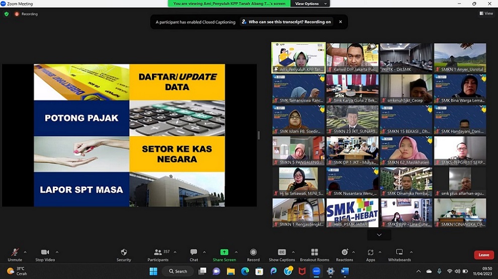 Kanwil DJP Jakarta Pusat berkolaborasi dengan KPP Pratama Jakarta Tanah Abang III mengadakan kegiatan Bimbingan Teknis (Bimtek) Aspek Perpajakan terkait dana bantuan Pemerintah kepada dunia pendidikan (Selasa, 11/4). Acara ini dihadiri oleh pengurus SMK se-Provinsi DKI Jakarta, Jawa Barat dan Banten.