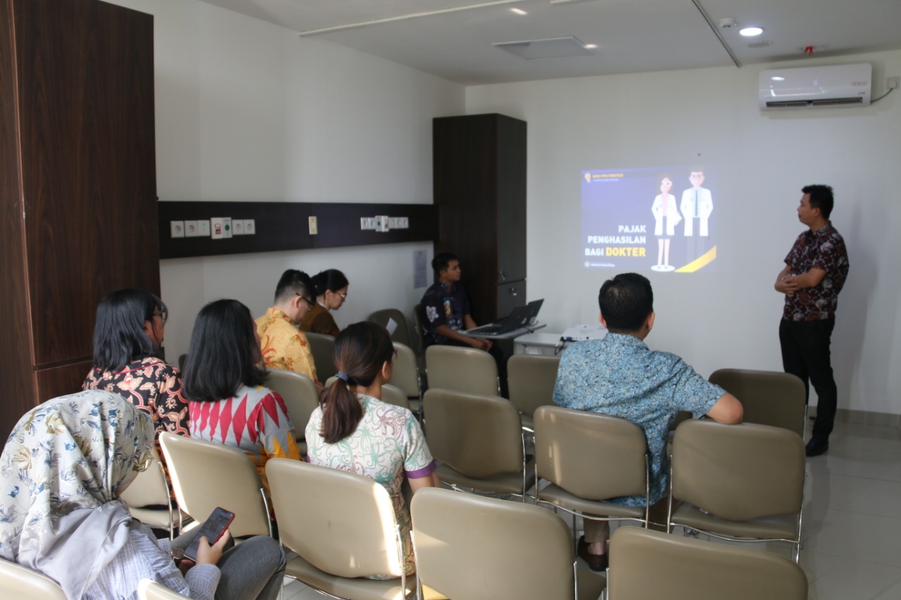 Sosialisasi pajak bagi dokter dilaksanakan di Aula Rumah Sakit Siloam Silampari Lubuklinggau (Jumat, 18/10). Sosialisasi dibuka oleh dr. Susanti Abdiwidjaja,M.Biomed selaku pengurus dokter di Rumah Sakit Siloam Silampari dan dilanjutkan dengan pemaparan materi oleh Suhandi, Account Representative KPP Pratama Lubuk Linggau.