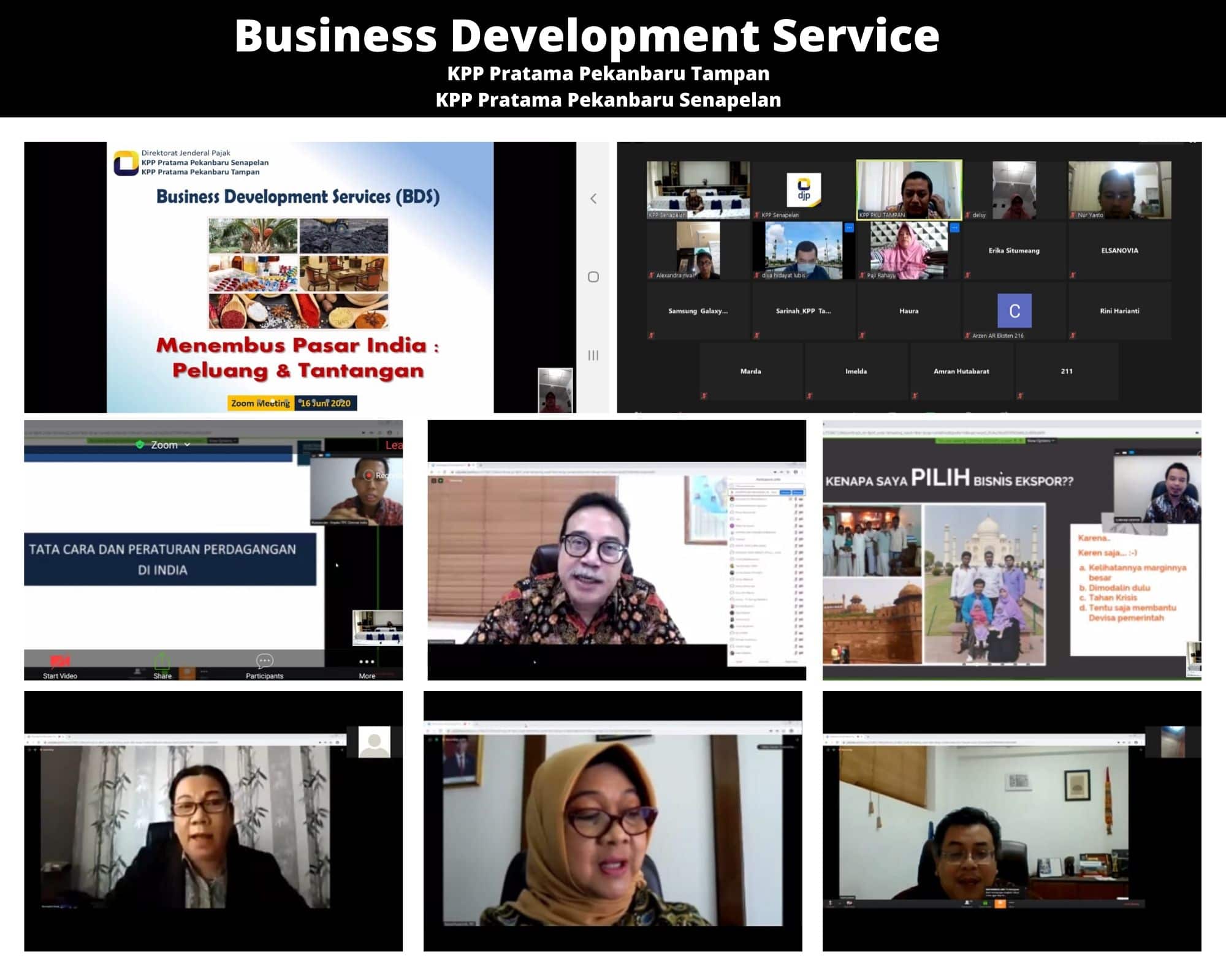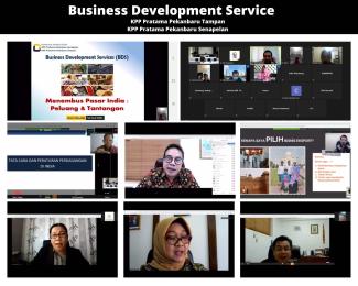 Kegiatan BDS yang digelar secara virtual ini, diinisiasi oleh Balai Besar Pendidikan dan Pelatihan Ekspor India (PPEI) Ditjen Pengembangan Ekspor Nasional yang bekerja sama dengan Konsulat Jenderal Republik Indonesia (KJRI) di Mumbai India dan Indonesian Trade Promotion Center (ITPC) Chennai yang memperuntukkan webinar ini kepada para pelaku usaha di Indonesia termasuk UMKM dengan mengangkat tema “Menembus Pasar India: Peluang dan Tantangan.” BDS daring Se-kota pekanbaru dibuka oleh Kepala Seksi Ekstensifikasi dan Penyuluhan KPP Pratama Pekanbaru Senapelan Rimon Domiyandra, dilanjutkan dengan pembukaan oleh Elmon Maron yang juga selaku Kepala Seksi Ekstensifikasi dan Penyuluhan KPP Pratama Pekanbaru Tampan.