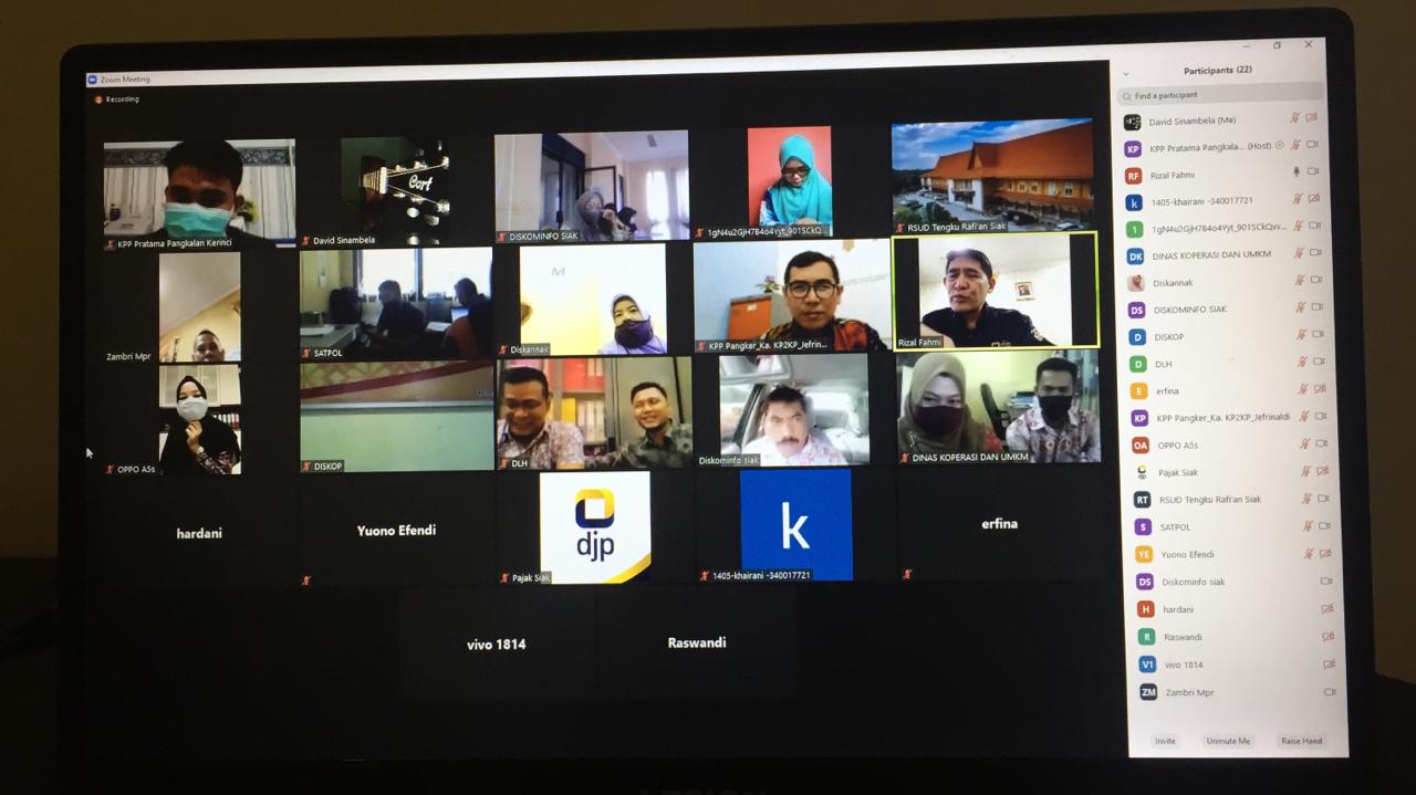 KP2KP Siak kembali melanjutkan Kelas Pajak via aplikasi Zoom mulai pukul 09.00 WIB di Siak (Kamis, 9/7). Webinar kali ini membahas dua tema, yaitu "Fasilitas Perpajakan Barang dan Jasa Di Masa Penanganan Virus Covid-19" dan juga "Tata Cara Pendaftaran dan Penghapusan NPWP, Pengukuhan dan Pencabutan PKP, Serta Potong/Pungut Pajak Instansi Pemerintah." Acara webinar yang dihadiri kurang lebih 25 peserta dari perwakilan Instansi dan Satuan Kerja di Kabupaten Siak ini dihadiri langsung oleh Kepala KPP Pratama Pangkalan Kerinci Rizal Fahmi.