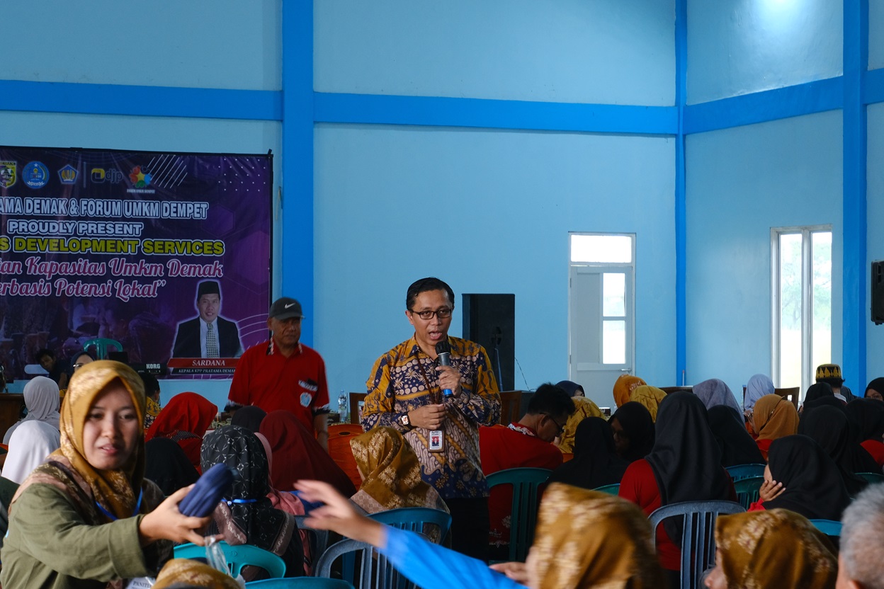 Kantor Pelayanan Pajak (KPP) Pratama Demak bekerja sama dengan Forum Usaha Mikro, Kecil dan Menengah (UMKM) Kota Wali cabang Dempet dan Dinas Perdagangan, Koperasi, dan UKM (Dindagkop) Kabupaten Demak menyelenggarakan kegiatan Business Development Services di Kantor Kecamatan Dempet, Kab. Demak (Selasa, 15/10).