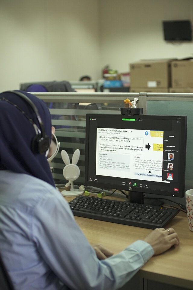 Melalui media meeting daring, Penyuluh Pajak mengedukasi para peserta yang sebelumnya sudah mendaftarkan diri dengan cara mengisi formulir secara online. Informasi pendaftaran ini disebarluaskan melalui instagram resmi KPP Pratama Balikpapan Timur @pajakbalikpapantimur.