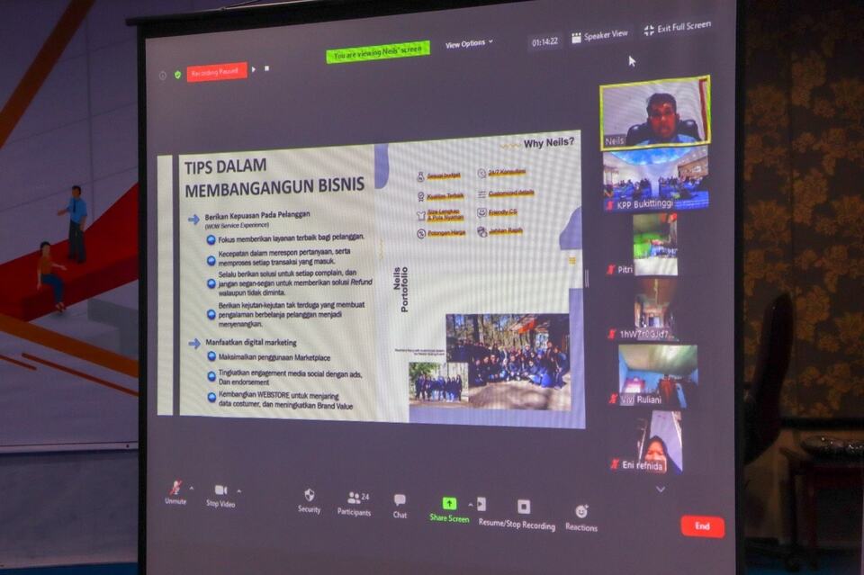 Kantor Pelayanan Pajak (KPP) Pratama Bukittinggi mengadakan Business Development Services (BDS) dengan tema “Strategi dan Tantangan UMKM dalam masa pandemi Covid-19” yang dilaksanakan secara virtual di Aula KPP Pratama Bukittinggi (Kamis, 10/9). Acara ini diikuti oleh pelaku UMKM di Kabupaten Agam dan Kota Bukittinggi melalui media Zoom Meeting di tempat masing-masing.