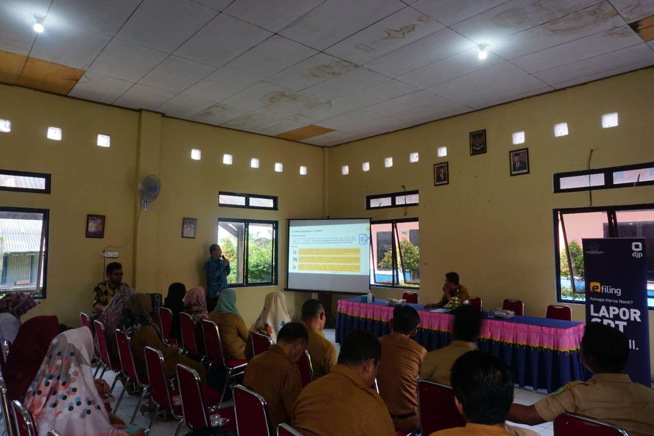 Kantor Pelayanan, Penyuluhan, dan Konsultasi Perpajakan (KP2KP) Ranai menggelar edukasi perpajakan tentang Peraturan Menteri Keuangan Nomor 59/PMK.03/2022 (PMK-59) di Kecamatan Pulau Tiga, Kabupaten Natuna (Selasa, 8/11). Edukasi ini dihadiri oleh para bendahara kecamatan, bendahara desa, dan bendahara sekolah di wilayah Kecamatan Pulau Tiga.