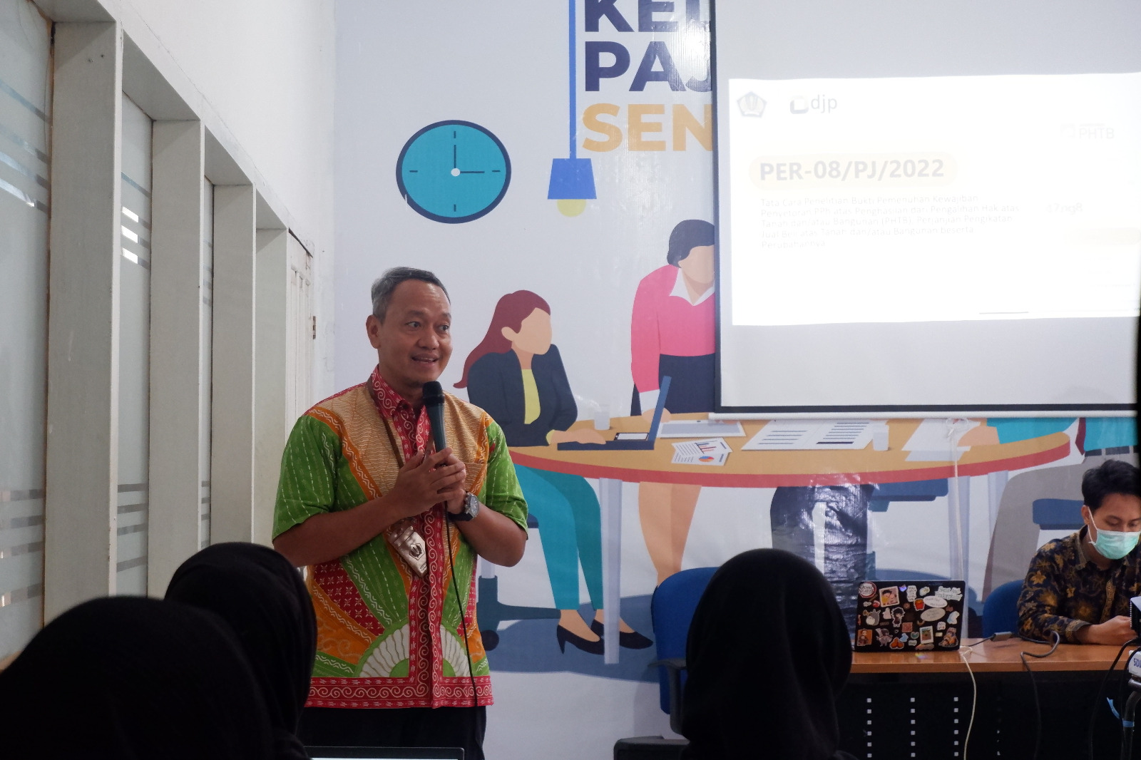 Materi perpajakan pada kegiatan tersebut dibagi kedalam dua bagian. Bagian pertama dibawakan oleh Muh Azzahir selaku Pelaksana KP2KP Sengkang. Zahir memaparkan terkait dasar aturan serta proses penelitian formal dan materil atas pengajuan validasi Bukti Pemenuhan Kewajiban Penyetoran PPh PHTB.