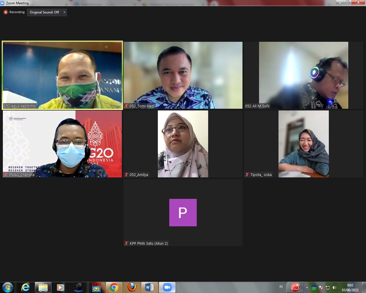 Kantor Pelayanan Pajak (KPP) Penanaman Modal Asing Satu (KPP PMA Satu) mengadakan edukasi One on One dengan topik PPeraturan Menteri Keuangan Nomor 189/PMK.03/2020 tentang Tata Cara Pelaksanaan Penagihan Pajak atas Jumlah Pajak yang Masih Harus Dibayar. Kegiatan ini menggandeng Juru Sita Pajak Negara (JSPN) dan dilaksanakan secara daring, Jakarta (Kamis, 2/6).