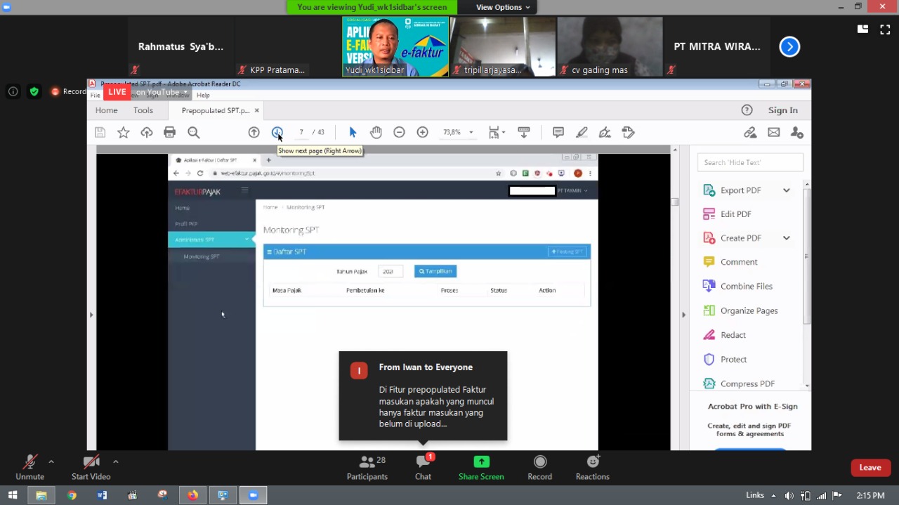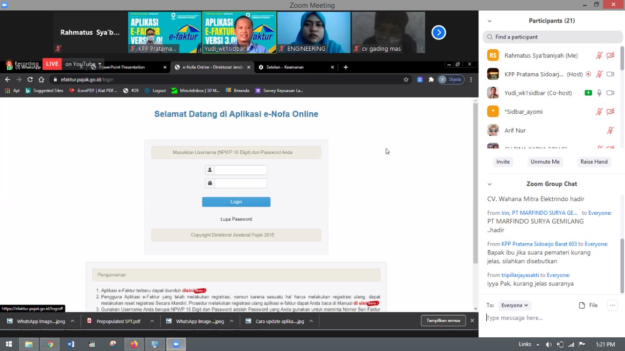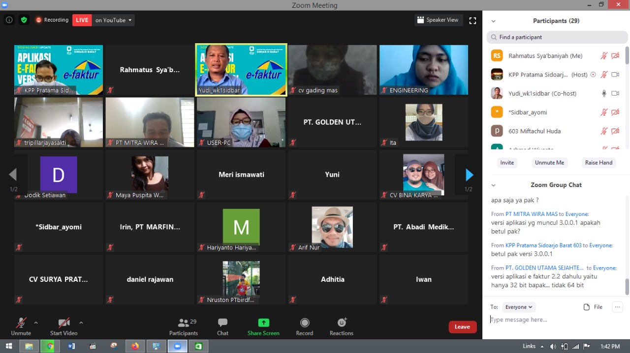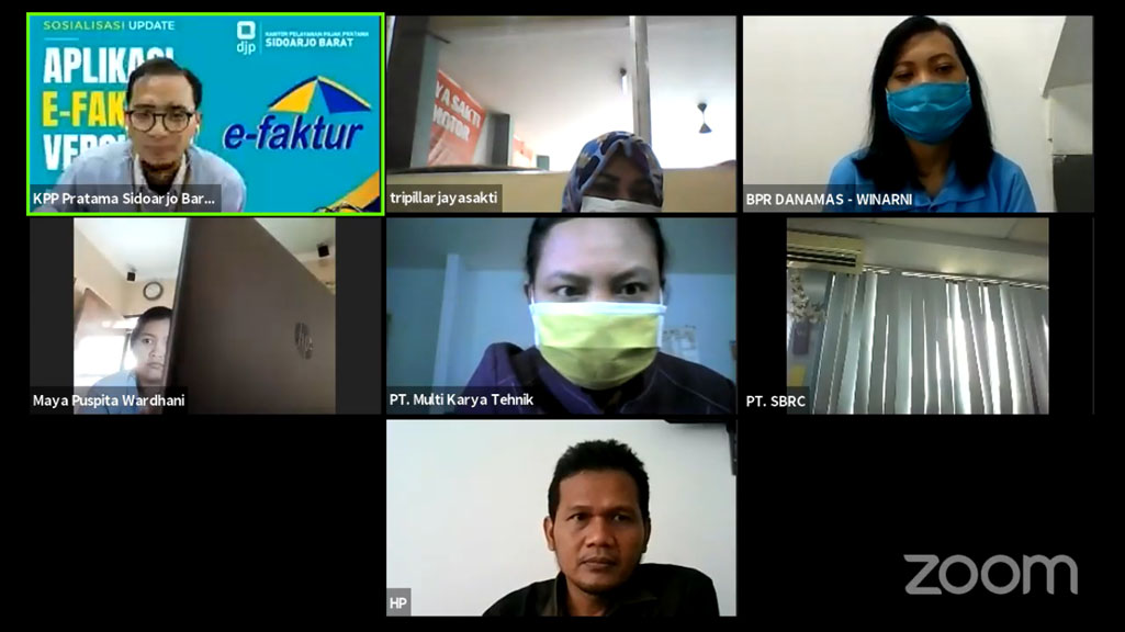 Kantor Pelayanan Pajak (KPP Pratama Sidoarjo Barat) menyelenggarakan kelas pajak dengan tema "Cara Update e-Faktur Versi 3.0 dan Instalasi Sertifikat Elektronik" melalui aplikasi Zoom Meeting dan Live Youtube di Sidoarjo (Rabu, 7/10).