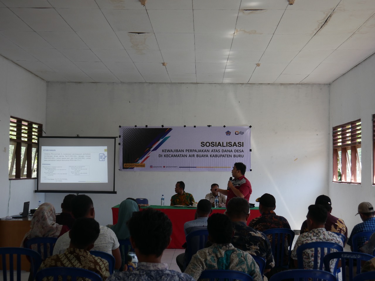 Kantor Pelayanan, Penyuluhan, dan Konsultasi Perpajakan (KP2KP) Namlea kembali melaksanakan sosialisasi kewajiban pemotongan/pemungutan pajak atas pengelolaan Dana Desa (DD) dan Alokasi Dana Desa (ADD) kepada seluruh desa yang berada di Kecamatan Air Buaya, Kabupatan Buru, Propinsi Maluku. Kegiatan yang dilaksanakan di Aula Kantor Kecamatan Air Buaya ini dihadiri oleh lebih dari 10 peserta yang merupakan perwakilan dari masing-masing desa (Kamis, 1/8).