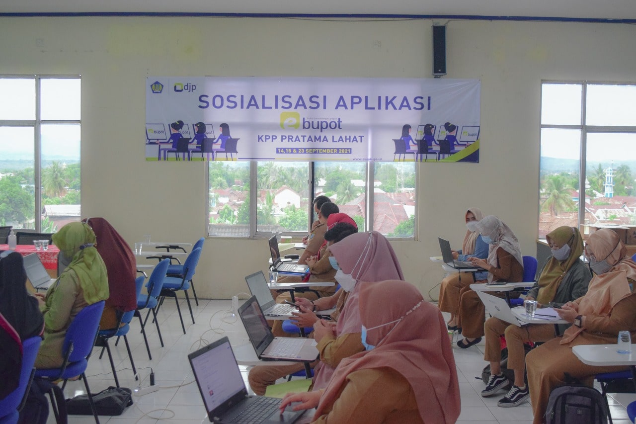 Kantor Pelayanan Pajak (KPP) Pratama Lahat mengadakan kegiatan Sosialisasi Edukasi Penggunaan Aplikasi E-Bupot yang dihadiri oleh puluhan Bendahara Instansi Pemerintah Kabupaten Lahat, di Aula KPP Pratama Lahat, Kabupaten Lahat (Selasa, 14/9). Sosialisasi ini dibagi menjadi 2 sesi dalam dua hari berturut-turut, agar tetap menjaga protokol Kesehatan.