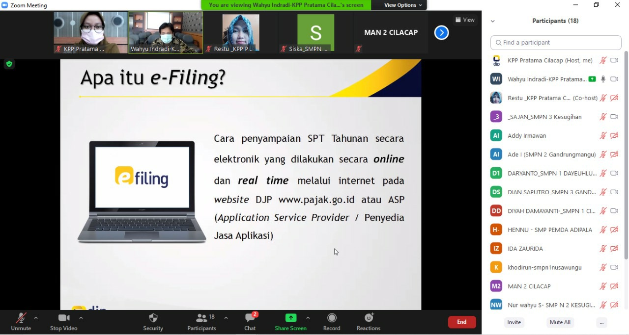 KPP Pratama Cilacap menggelar Kelas Pajak secara daring (online) mengenai Pengisian SPT Tahunan khusus karyawan dari ruang rapat di Cilacap (Selasa, 23/3). Dilaksanakan sejak pukul 10.00 WIB dan berlangsung kurang lebih selama 90 menit, kegiatan ini diisi materi oleh Tim Penyuluh KPP Pratama Cilacap.