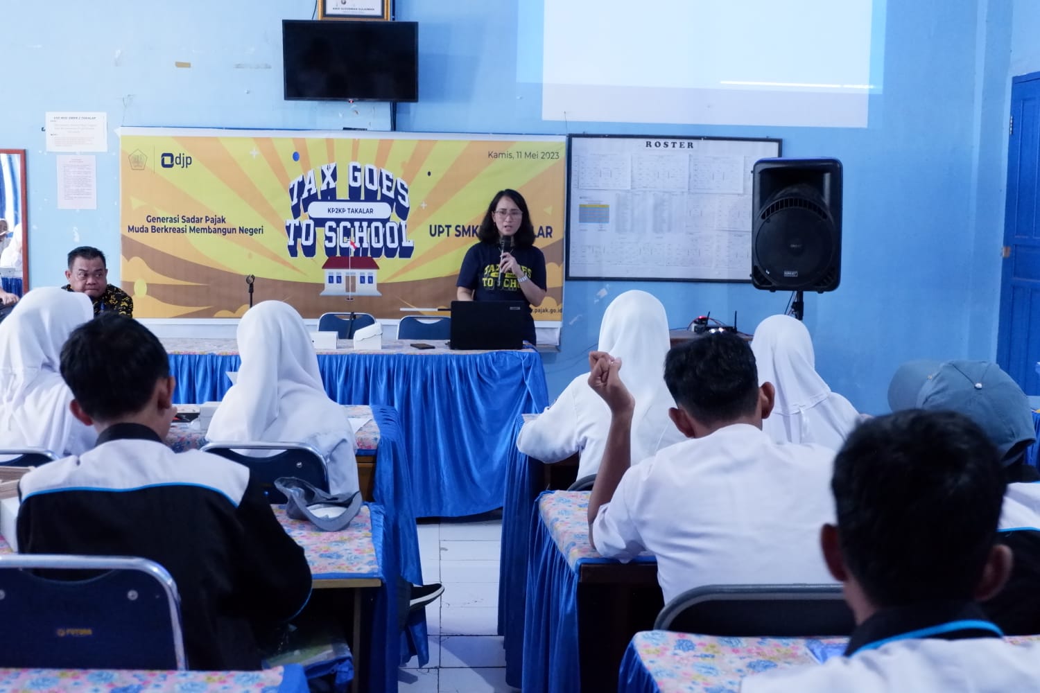 Kantor Pelayanan, Penyuluhan, dan Konsultasi Perpajakan (KP2KP) Takalar menyelenggarakan kegiatan Tax Goes To School (TGTS) di Sekolah Menengah Kejuruan Negeri (SMKN) 2 Takalar, Sombabella, Kec. Pattallassang, Kab. Takalar. Kegiatan TGTS mengusung tema "Generasi Sadar Pajak, Muda Berkresasi Membangun Negeri" (Kamis, 11/5).