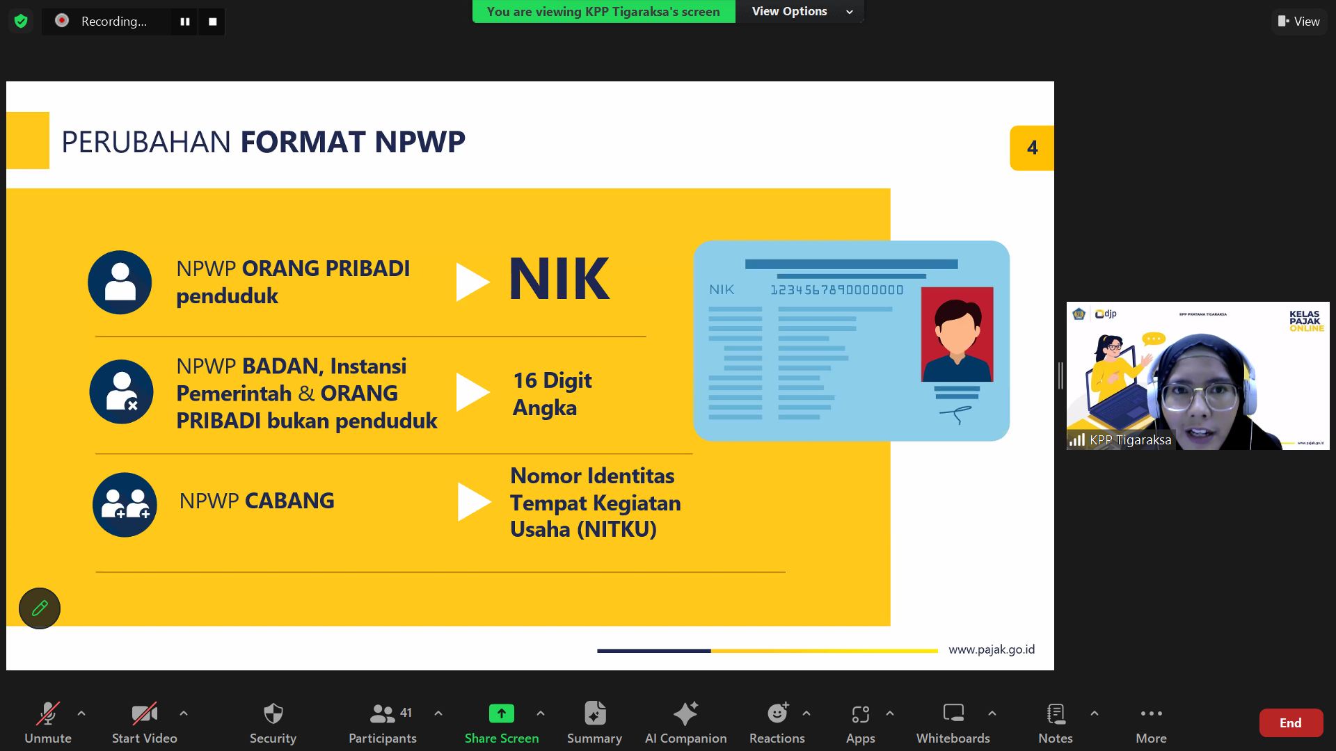 Kantor Pelayanan Pajak (KPP) Tigaraksa menyelenggarakan Kelas Pajak mengenai e-Bupot Unifikasi Instansi Pemerintah. Kelas Pajak ini diselenggarakan langsung dari ruang studio KPP Pratama Tigaraksa secara daring melalui aplikasi Zoom Cloud Meeting KPP Pratama Tigaraksa (Senin, 22/1).