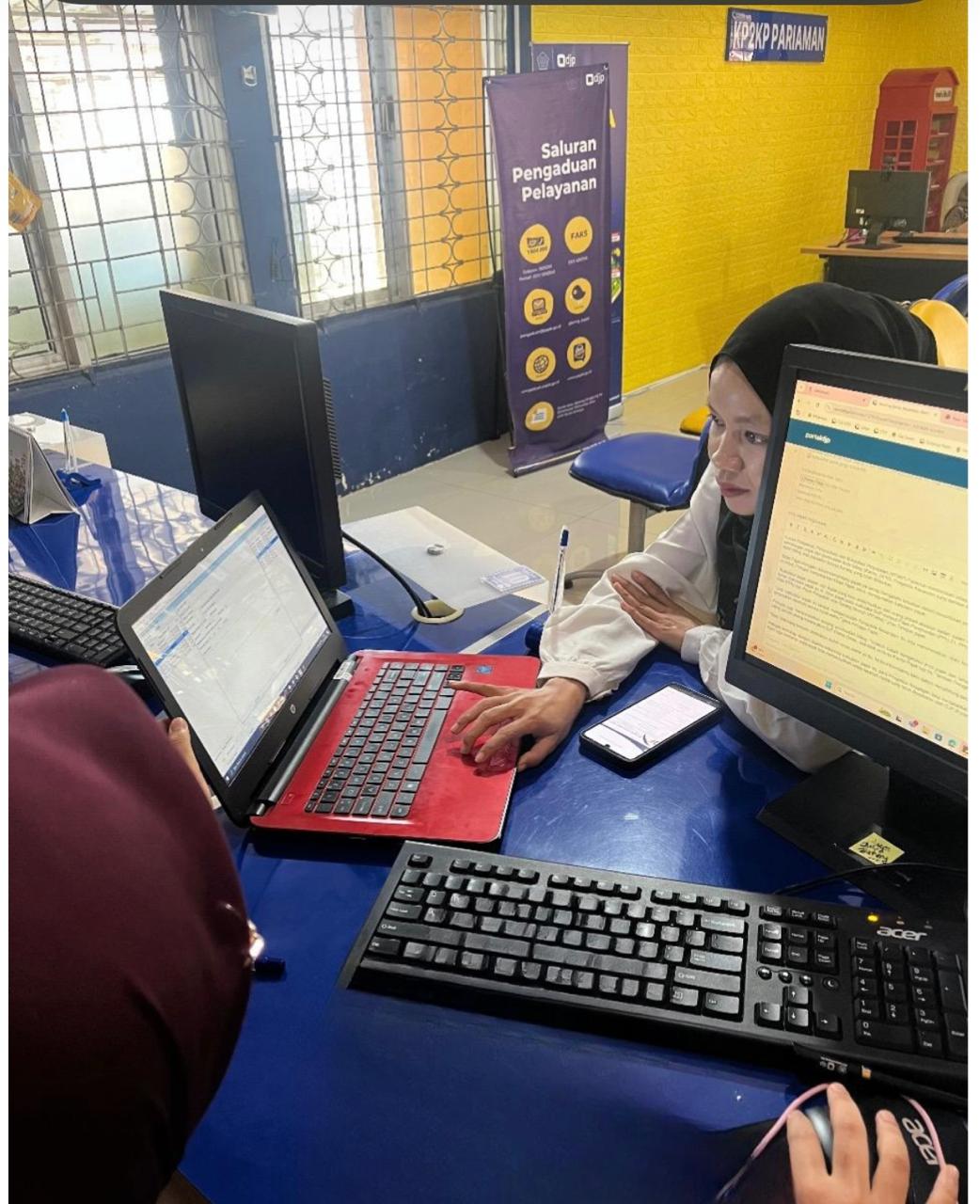 Petugas Kantor Pelayanan, Penyuluhan, dan Konsultasi Perpajakan (KP2KP) Pariaman memberikan layanan konsultasi kepada Wajib Pajak Pengusaha Kena Pajak (PKP) yang menghadapi kendala dalam pembuatan dan pengunggahan faktur pajak keluaran di Tempat Pelayanan Terpadu (TPT) KP2KP Pariaman, Kota Pariaman (Senin, 02/12).