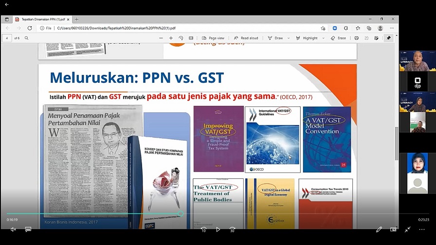 Kantor Wilayah Direktorat Jenderal Pajak (Kanwil DJP) Banten menggelar Club Literacy pertemuan kedua bersama para pegawai, dosen, dan mahasiswa dari tax center di Lingkungan Kanwil DJP Banten dengan tema Tepatkah Dinamakan PPN di Serang, Banten (Jumat, 24/9).