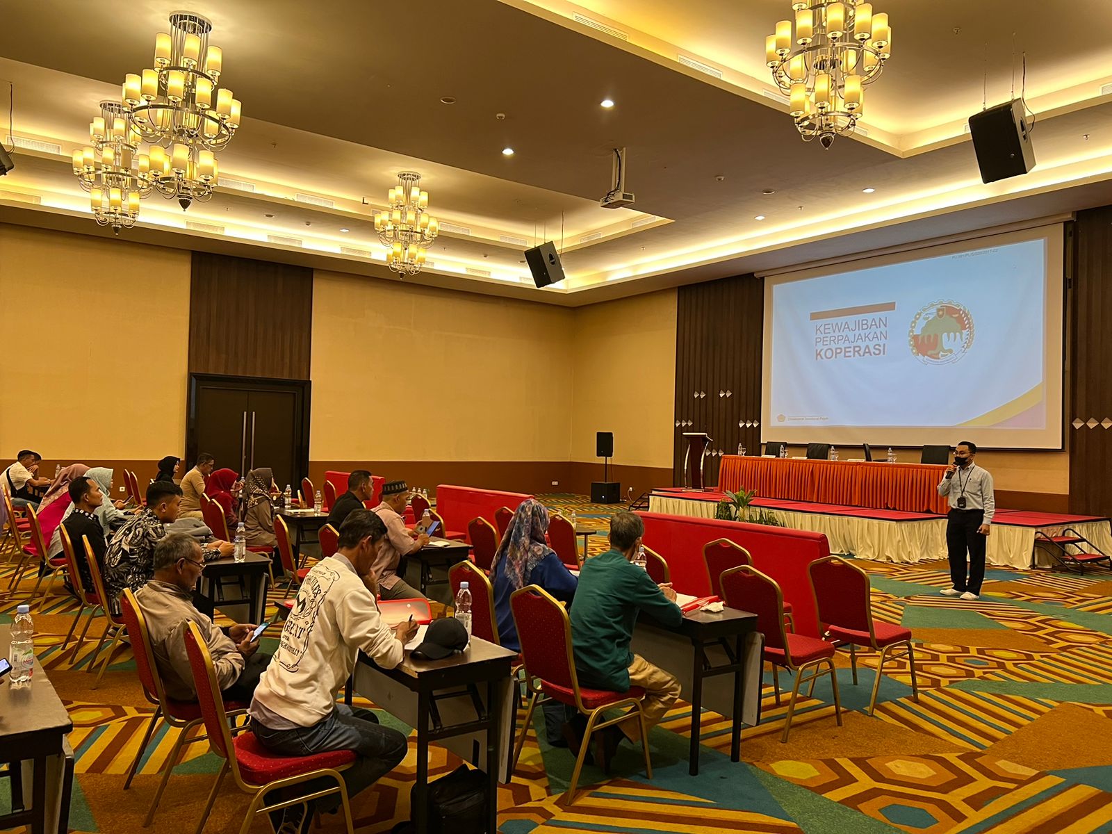 Kantor Pelayanan Penyuluhan dan Konsultasi Perpajakan (KP2KP) Muara Enim bekerja sama dengan Dinas Koperasi Kabupaten Muara Enim dalam menggelar sosialisasi kewajiban perpajakan koperasi di Ballroom Hotel Grand Zuri, Muara Enim, Sumatera Selatan (Rabu, 5/7).