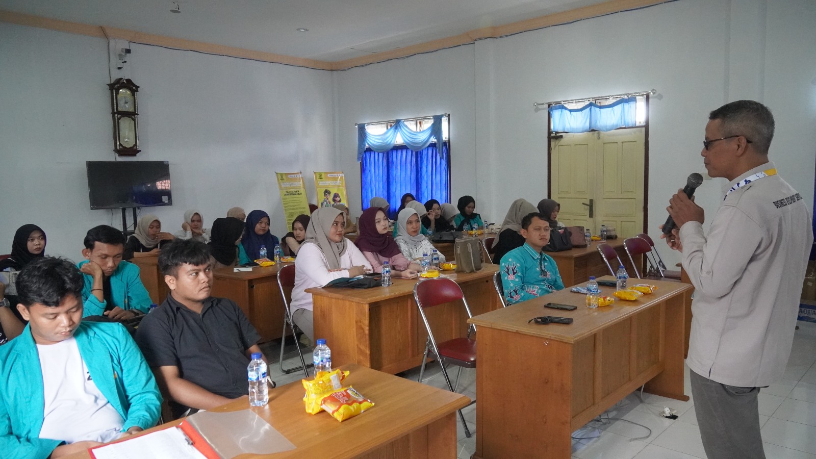 Kepala KPP Pratama Muara Bungo, dalam sambutannya, menekankan pentingnya membangun pemahaman sejak dini mengenai peran strategis pajak dalam pembangunan negara. “Pajak bukan sekadar kewajiban, tetapi merupakan wujud kontribusi nyata setiap warga negara dalam menjaga keberlangsungan pembangunan. Melalui kegiatan ini, kami berharap mahasiswa tidak hanya mengenal pajak, tetapi juga memahami pentingnya menjadi warga negara yang taat dan peduli,” ujarnya.
