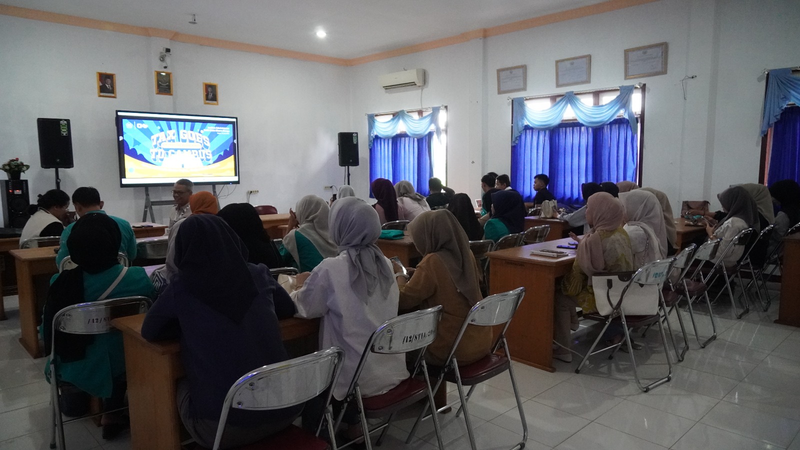 Kegiatan edukatif yang berlangsung meriah ini tidak hanya menghadirkan materi pengenalan perpajakan, tetapi juga dikemas secara interaktif melalui permainan, kuis, dan sesi tanya jawab yang melibatkan langsung para mahasiswa-mahasiswi. Suasana menjadi semakin hidup berkat antusiasme peserta yang tinggi serta pendekatan komunikatif dari para penyuluh pajak yang hadir.