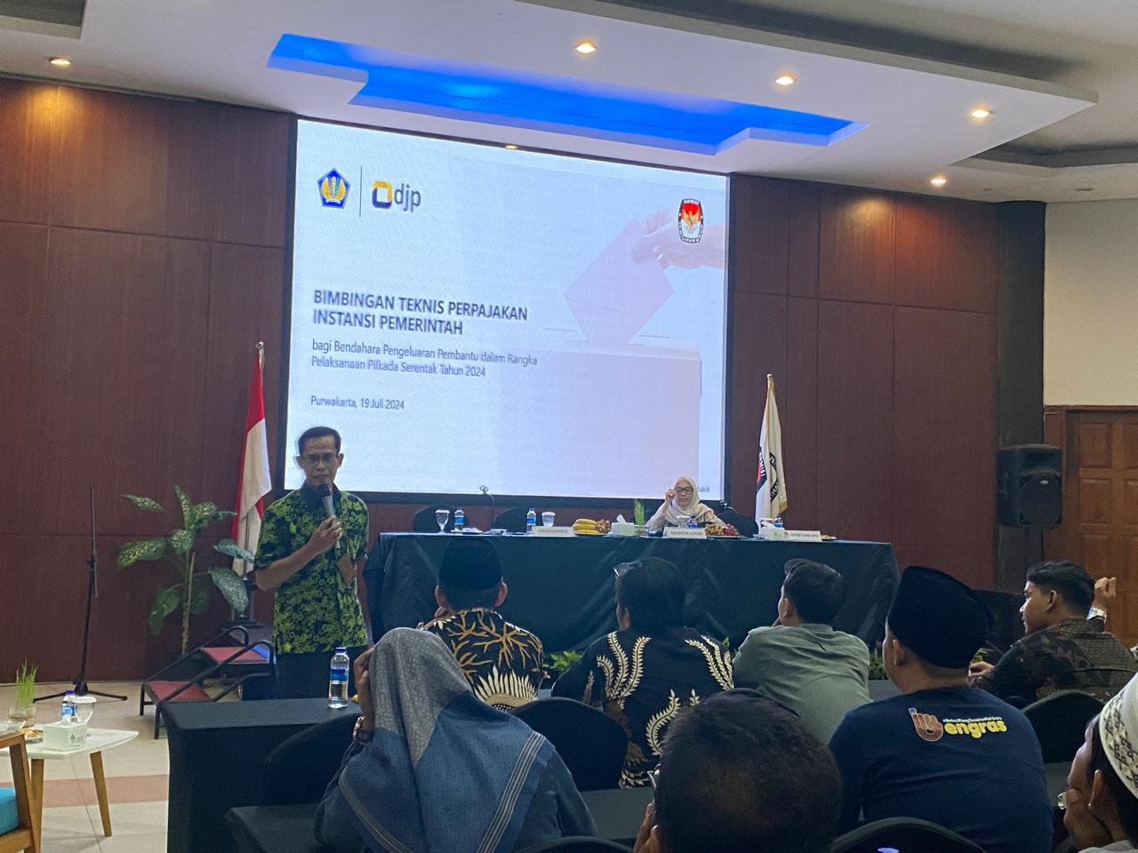 KPP Pratama Purwakarta melaksanakan penyuluhan kepada perwakilan Panitia Pemilihan Kecamatan (PPK) dan Panitia Pengurusan Suara (PPS) yang berada di KPU Kabupaten Purwakarta. Kegiatan ini merupakan satu dari rangkaian kegiatan Bimbingan Teknis Pengelolaan Dan Pertanggungjawaban Keuangan Tingkat Badan Adhoc Pemilihan Serentak Tahun 2024 yang dilaksanakan oleh KPU Kabupaten Purwakata di Hotel Jatiluhur Valley & Resort (Senin, 5/8).